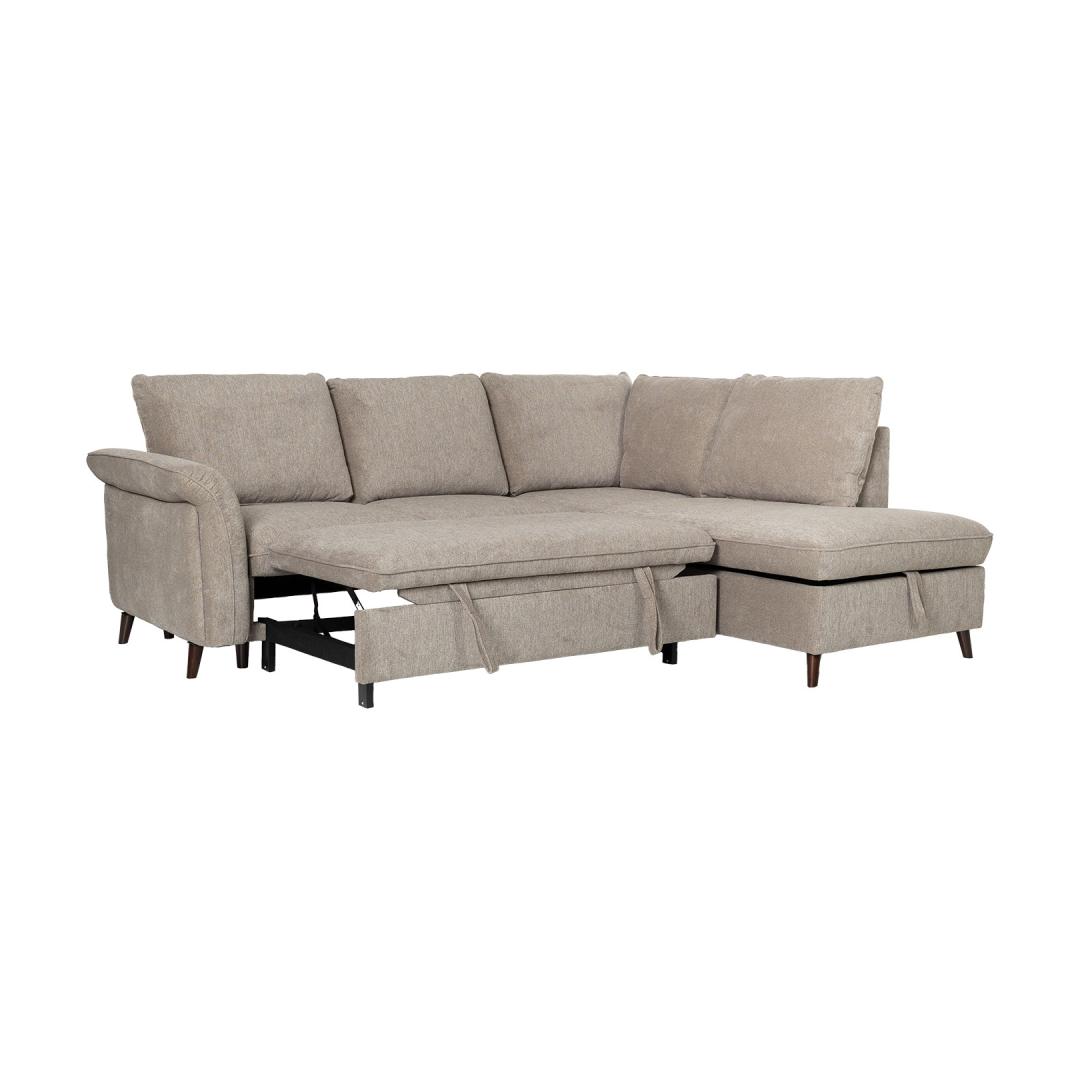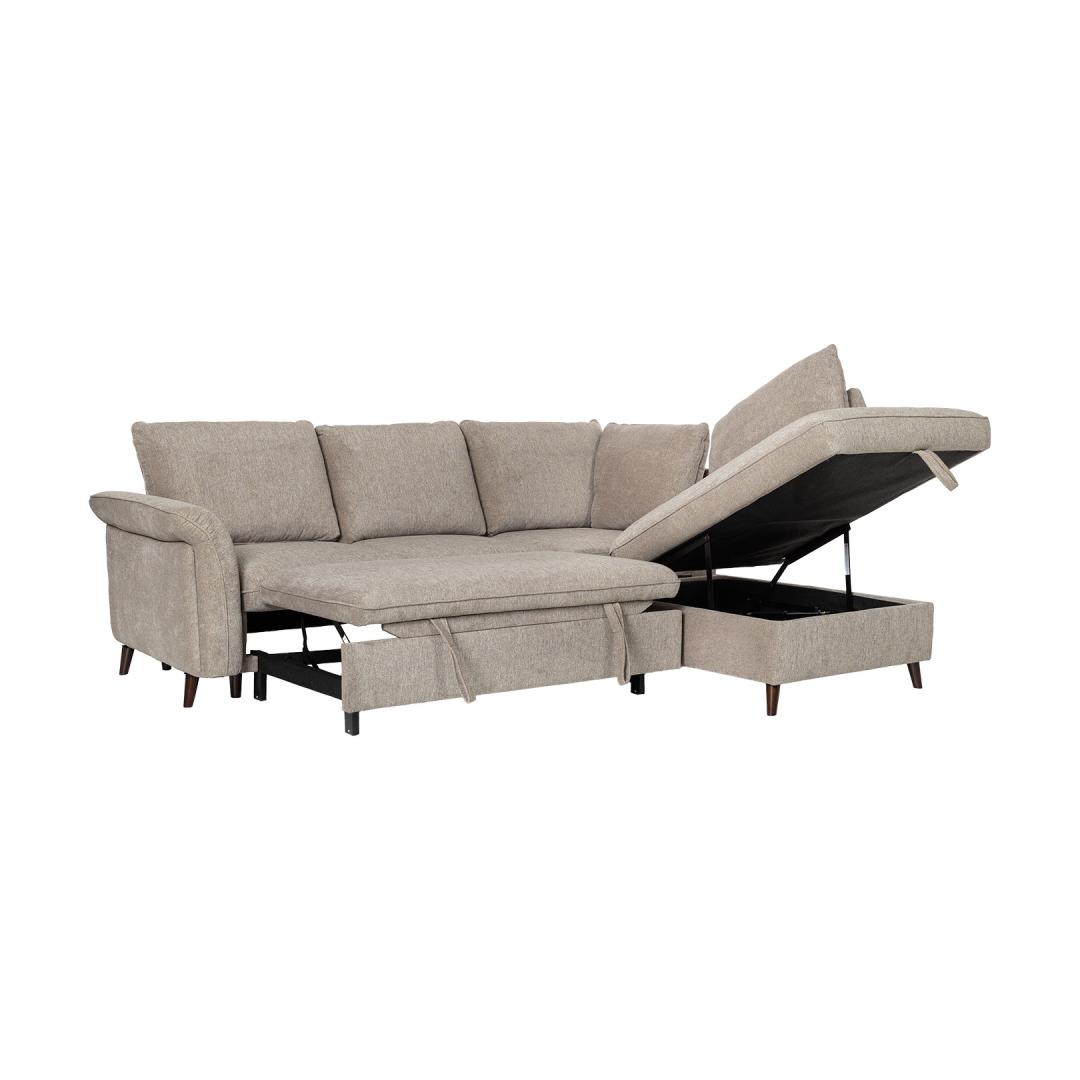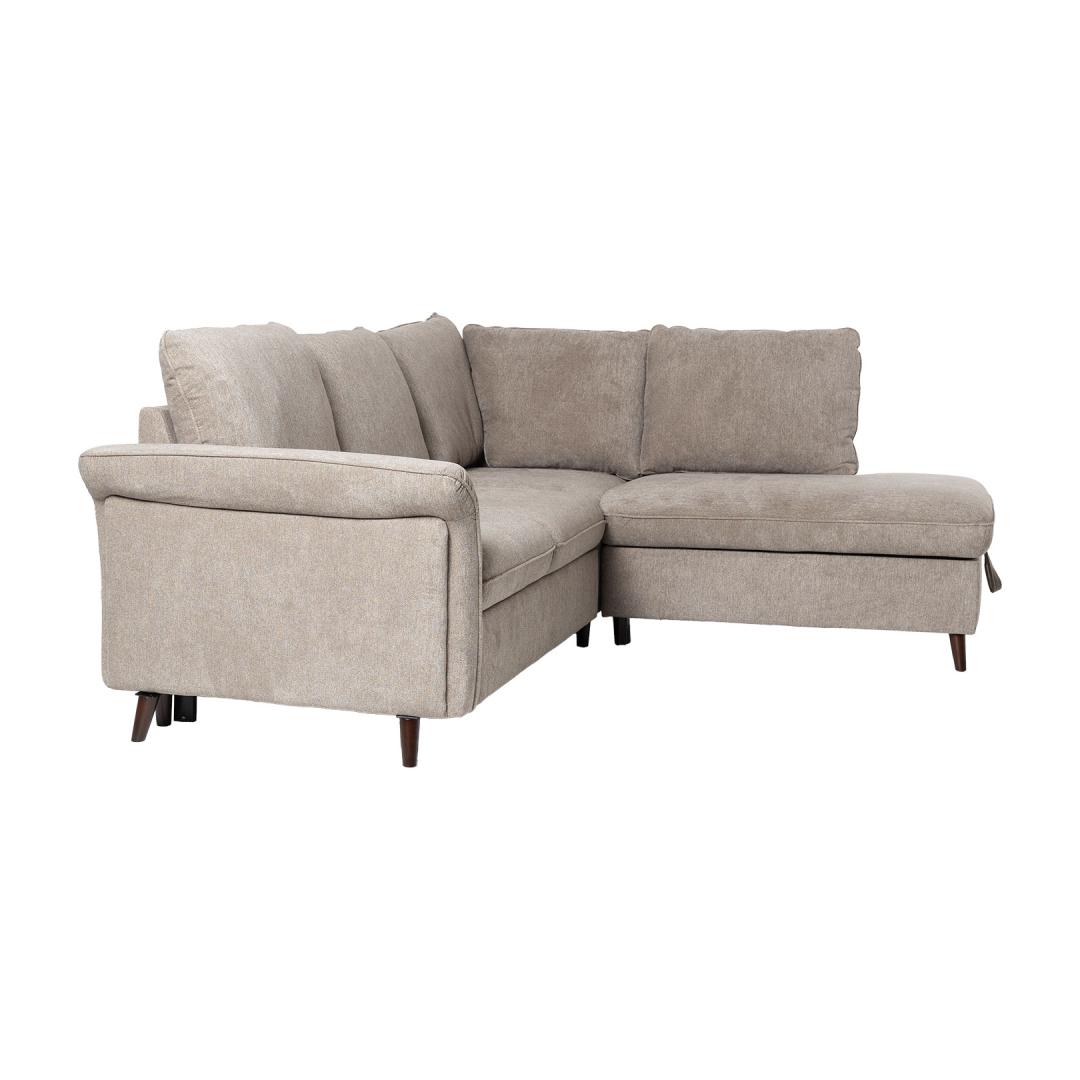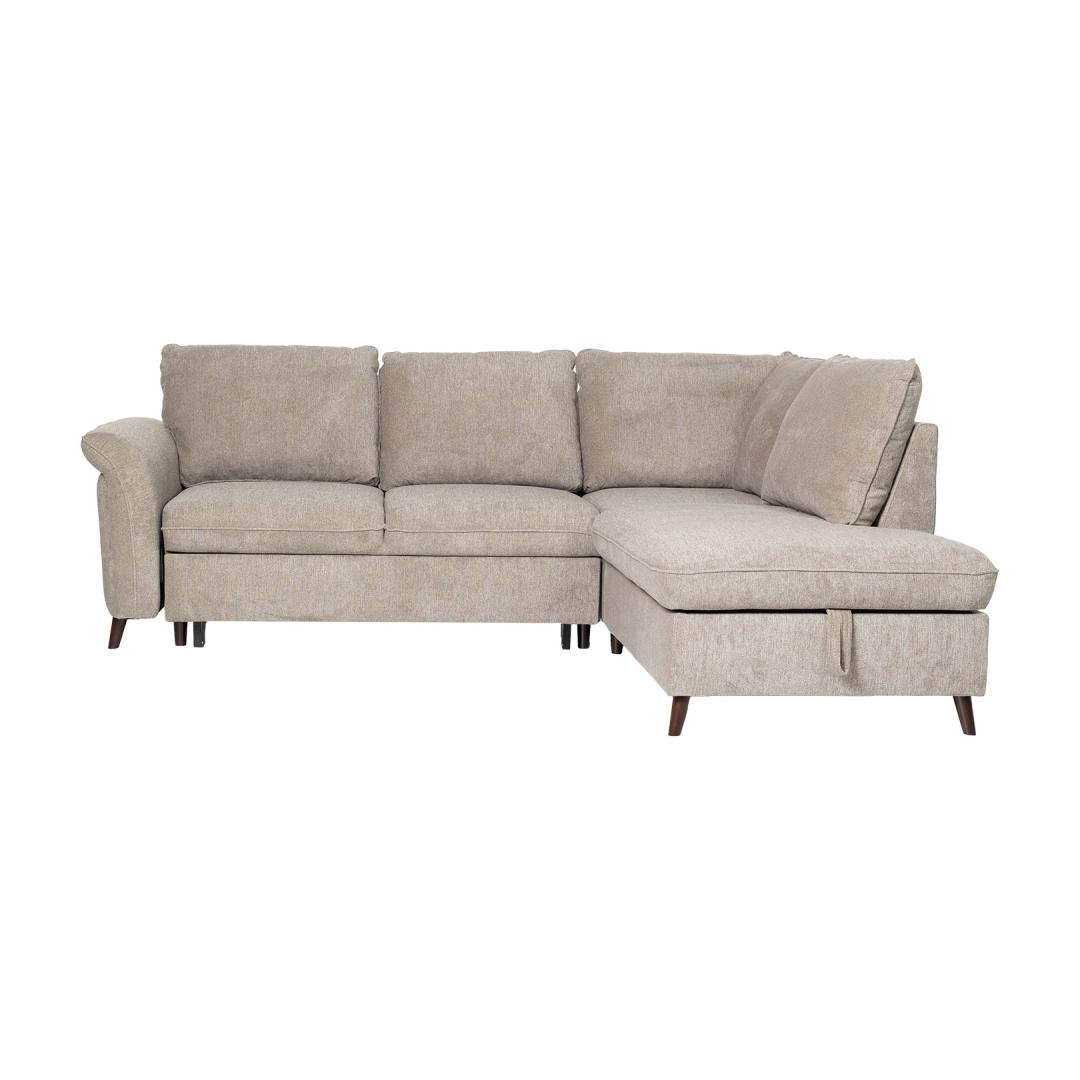 Diivanil on tumedad plastikust jalad H11cm. Nurgadiivanvoodi LINDY panipaigaga, parem nurk, helepruun.