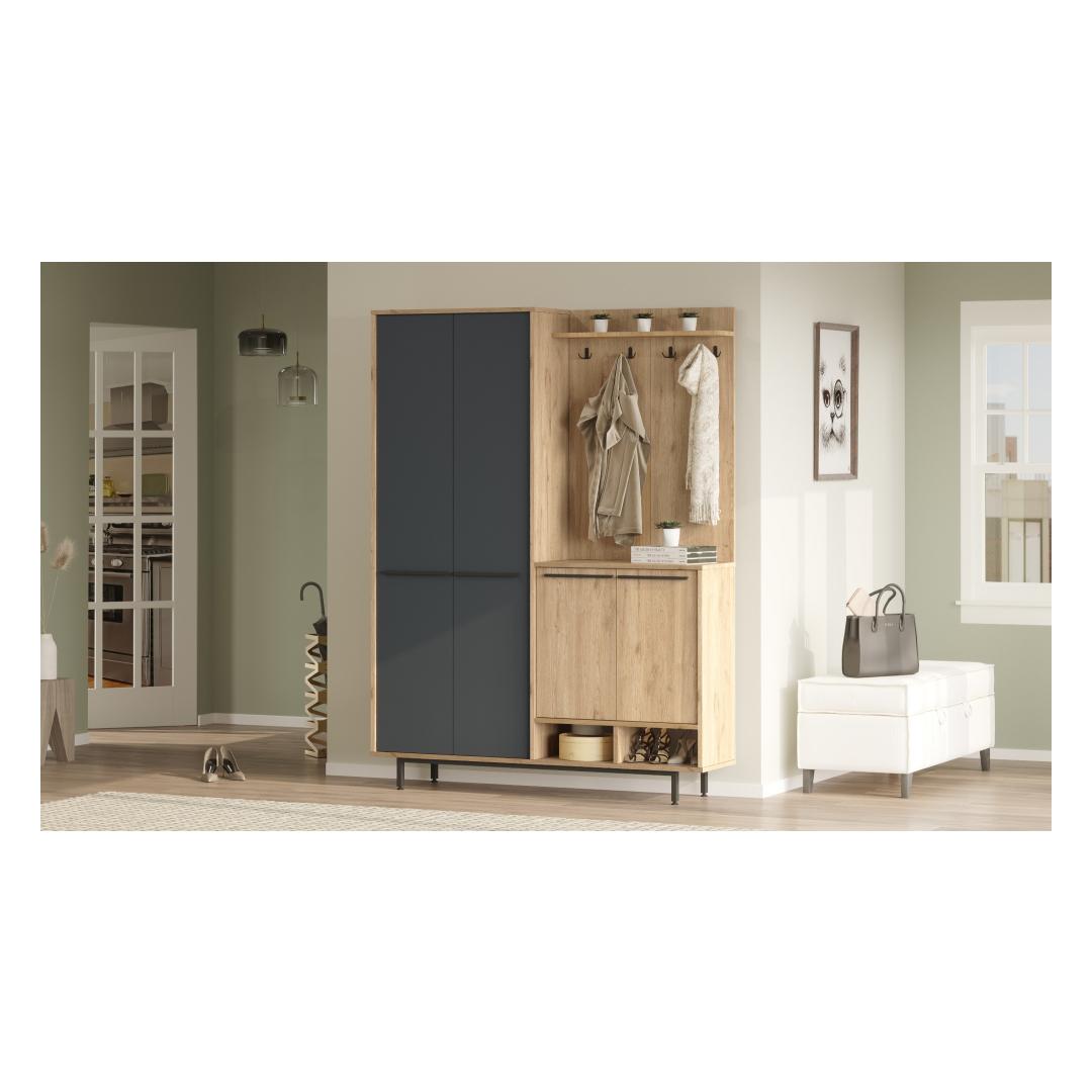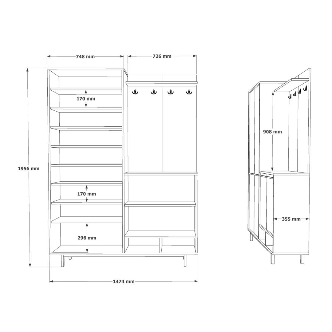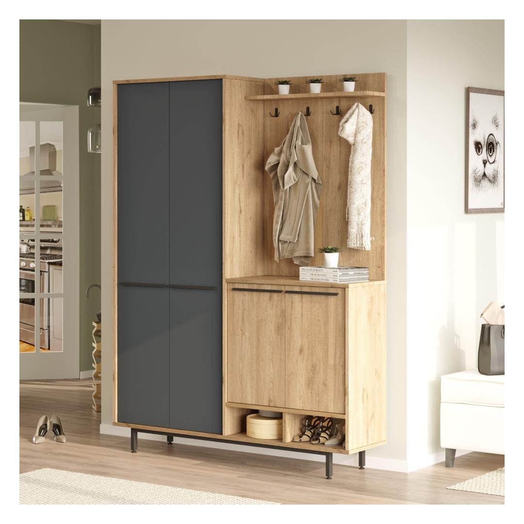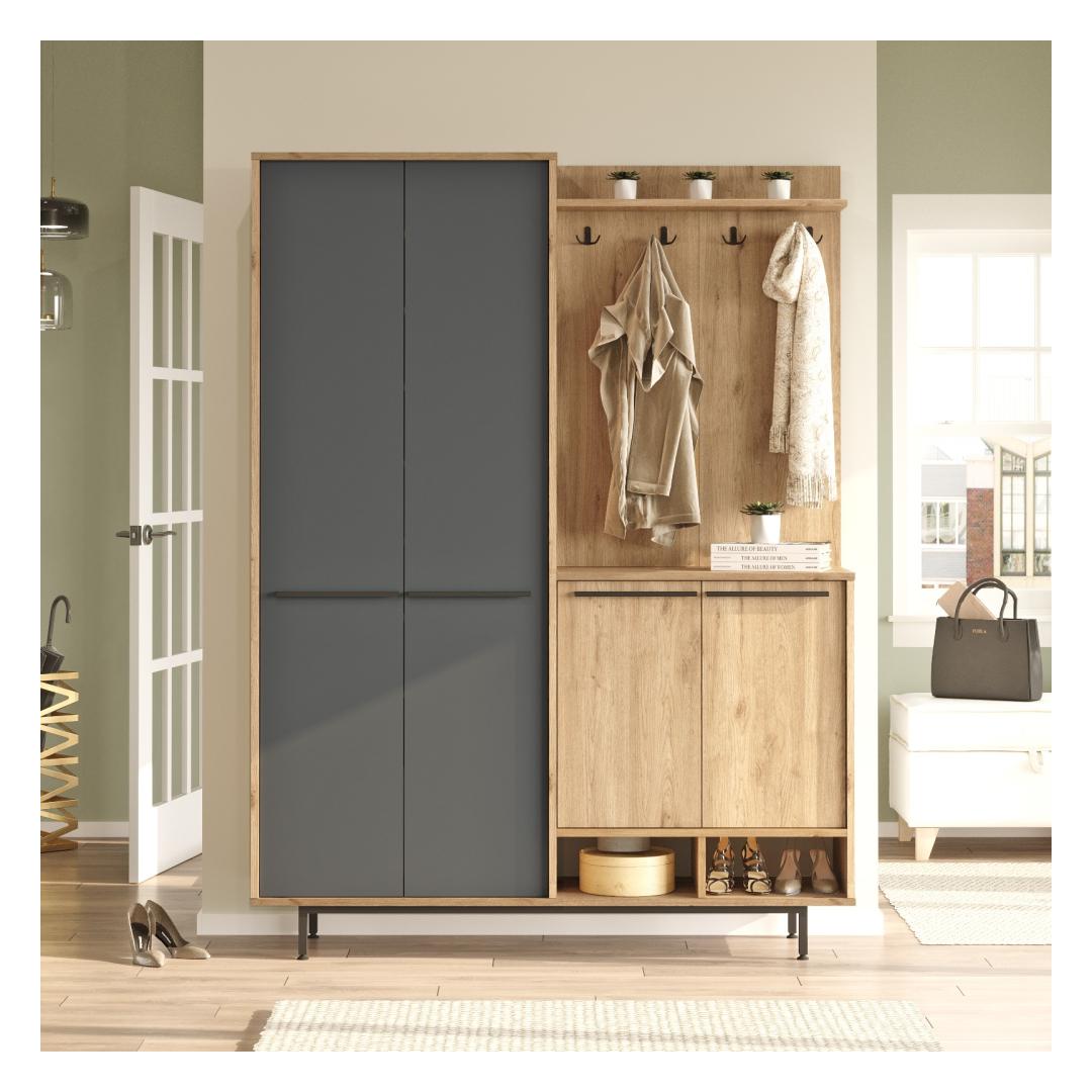Kas olete väsinud sellest, et iga päev kõnnite koridoris segaduses? öelge hüvasti kaosele ja tere korraldusele meie uimastava koridorikastiga! see tükk ei ole mitte ainult praktiline hoiulahendus, vaid ka kaunis lisa teie koju, mis toob teie ruumi rahu ja korra. Transformeeri oma koridorTänu oma elegantsele disainile ja kaasaegsele tamme ja antratsiidi värvipaletile tõstab see koridoristatiiv koheselt teie koridori välimust. Puhtad jooned ja rafineeritud viimistlus annavad igas kodus märku, luues teile ja teie külalistele külalislahke atmosfääri. Jääge organiseerituksSelle koridoripuldi arvukate riiulite ja lahtrite abil ei pane enam kunagi oma võtmeid, posti või kingi valesti. Hoidke kõik oma kohale ja kergesti kättesaadavana, et saaksite oma päeva alustada ilma asjatu stressi ja vaevata. Kvaliteetne käsitööValmistatud 100% melamiiniga kaetud puitlaastplaadist, ei ole see saalihoidja mitte ainult stiilne, vaid ka vastupidav ja kauakestev. 18 mm paksus tagab stabiilsuse ja tugevuse, samas kui võimalus kinnitada see seinale lisab lisaturvalisust. Tehnilised üksikasjad:Materjal: materjal: 100% melamiiniga kaetud puitlaastplaatPaksus: 18 mmLaius: 147. 4 cmKõrgus: 195. 6 cmSügavus: 35. 5 cmVärv: Tamm ja antratsiitArvukad riiulid hoiustamiseksVõimalik kinnitada seina külge stabiilsuse lisamiseks Värv: Oak Anthracite