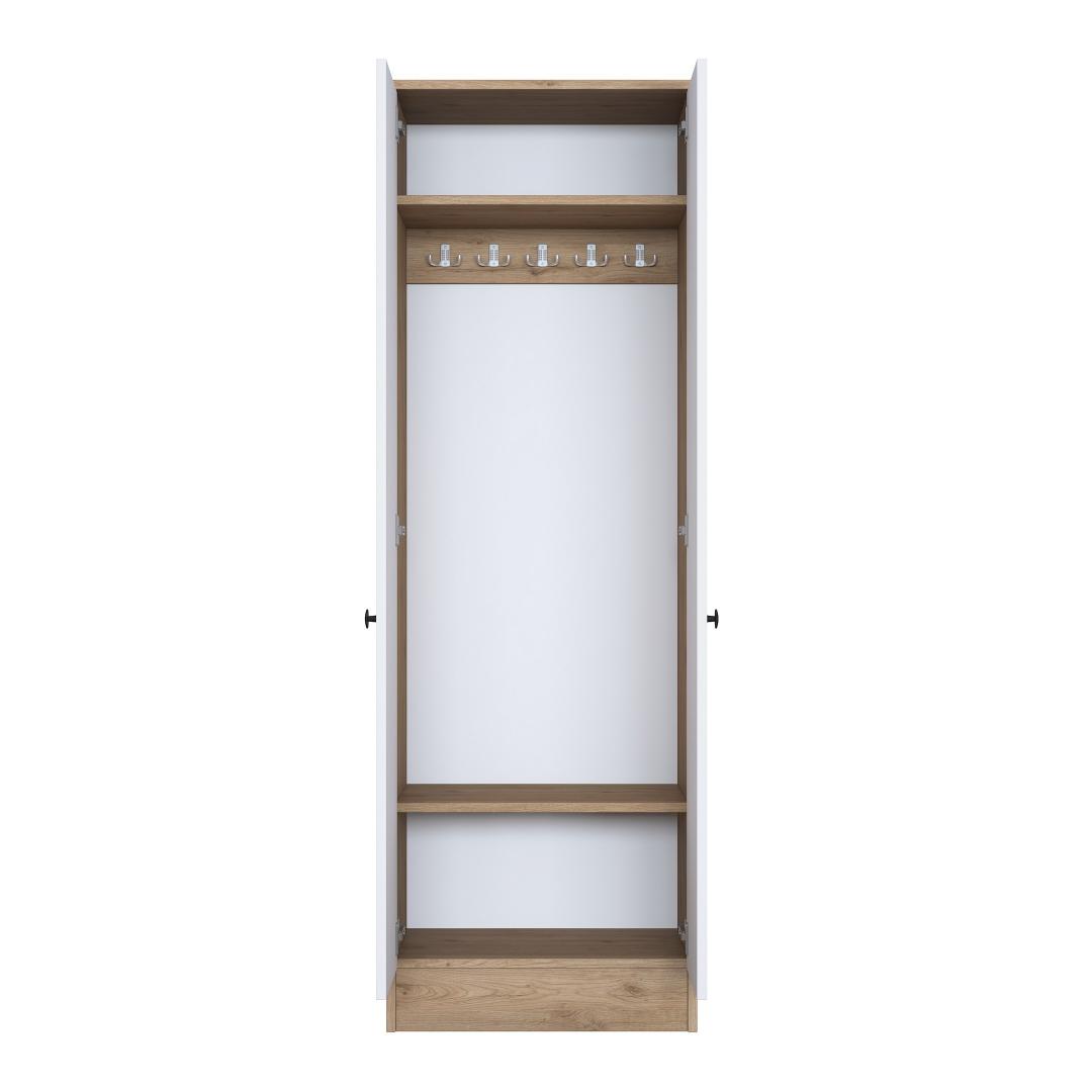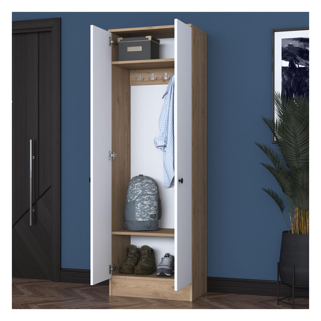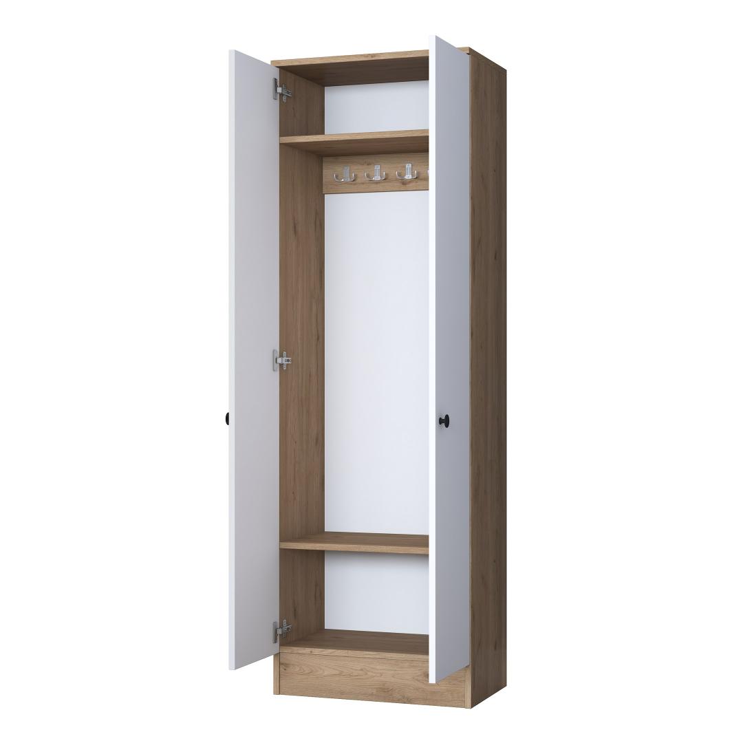 Tehke avaldus meie suurepärase koridoristendiga, mis ühendab endas stiili ja praktilisuse. Valmistatud 100% melamiiniga kaetud e1-kvaliteediga puitlaastplaadist, on see stend loodud kestma ja pidama vastu igapäevasele kulumisele. Selle stiilne disain ning valge ja pähklipuu värvi kombinatsioon tõstavad koheselt teie koridori välimust, luues sooja ja kutsuva atmosfääri.