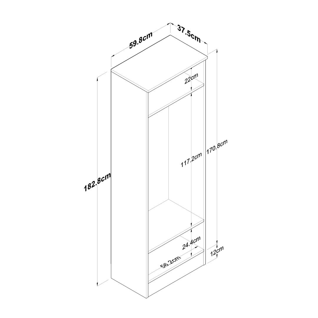 Width: 59,8 cm Height: 182,8 cm Depth: 37,5 cm