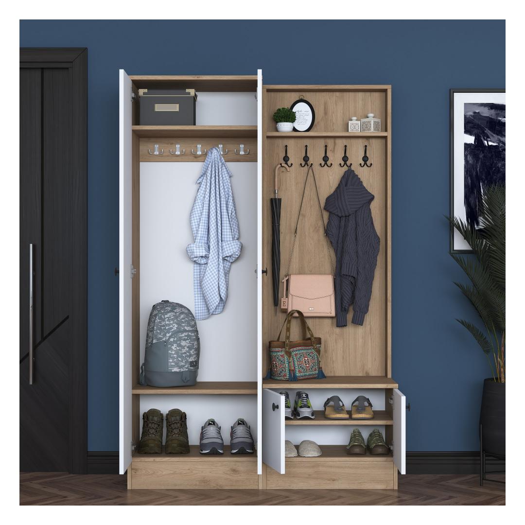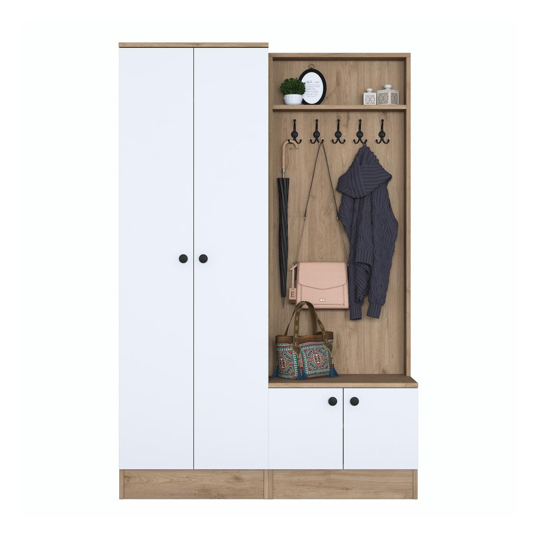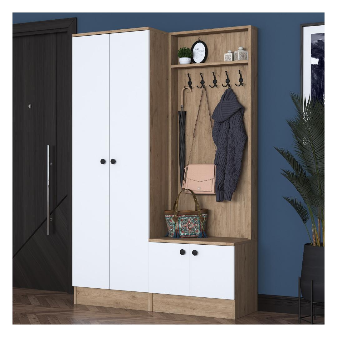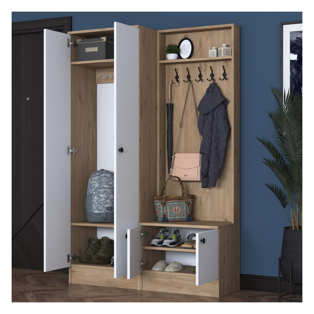 Ütle hüvasti ummistunud sissepääsudele! meie esiku stendil on arvukalt riiuleid ja täiendavaid panipaiku, mis pakuvad sulle piisavalt ruumi oma asjade korraldamiseks. Alates võtmetest ja rahakottidest kuni mütside ja sallideni on kõigel oma kindel koht.