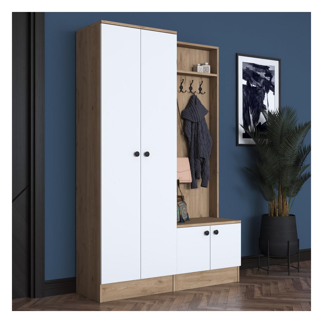 Tänu oma elegantsele disainile ja laitmatule käsitööle on meie saalihoidja ideaalne täiendus igasse moodsasse koju. Valge ja pähklipuu värvi kombinatsioon lisab rafineeritust, muutes selle väljapaistvaks esemeks, mis avaldab külalistele muljet.