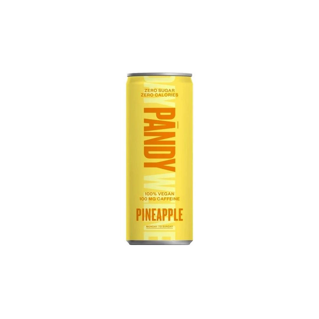 Karboniseeritud vesi, happesuse regulaator (sidrunhape, naatriumtsitraadid), antioksüdant (askorbiinhape), kofeiin 0,03%, magusained (sukraloos, tsüklamaadid) lõhna-ja maitseaine, toiduvärvid (karoteenid) Iga snäkk vajab hea maitsega jooki, sellepärast me maale tõime PÄNDY energiat andva karastusjoogi. Null suhkrut, null kalorit, 100% vegan ja tasakaalustatud kofeiini tase 100mg purgi kohta. Me võime uhkusega öelda, et see on üks parimaid kaasaegseid jooke maailmas!