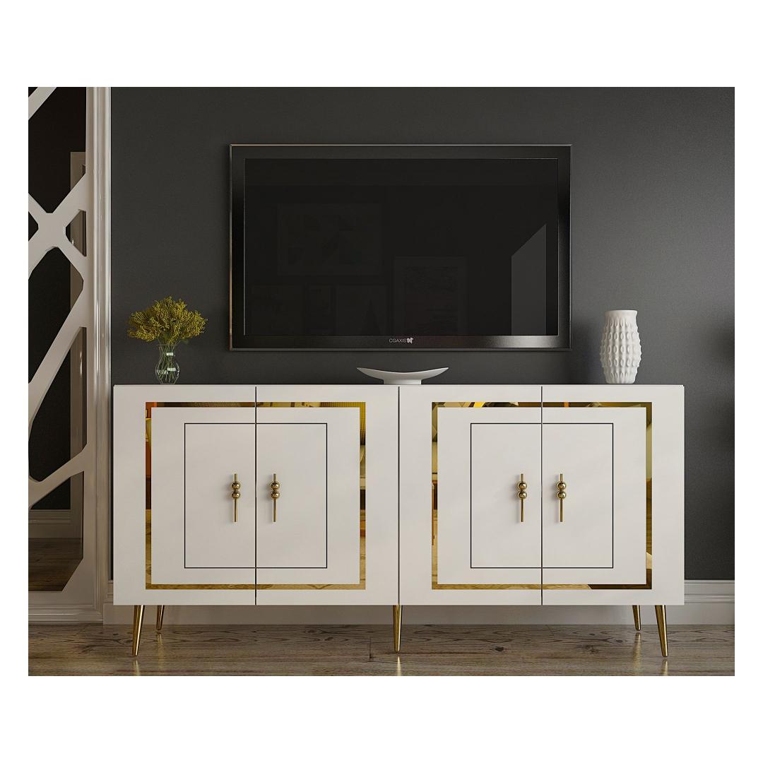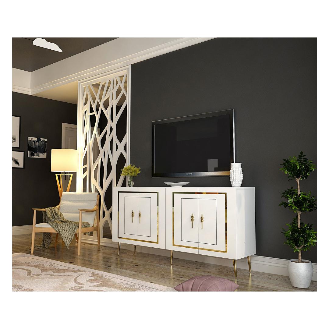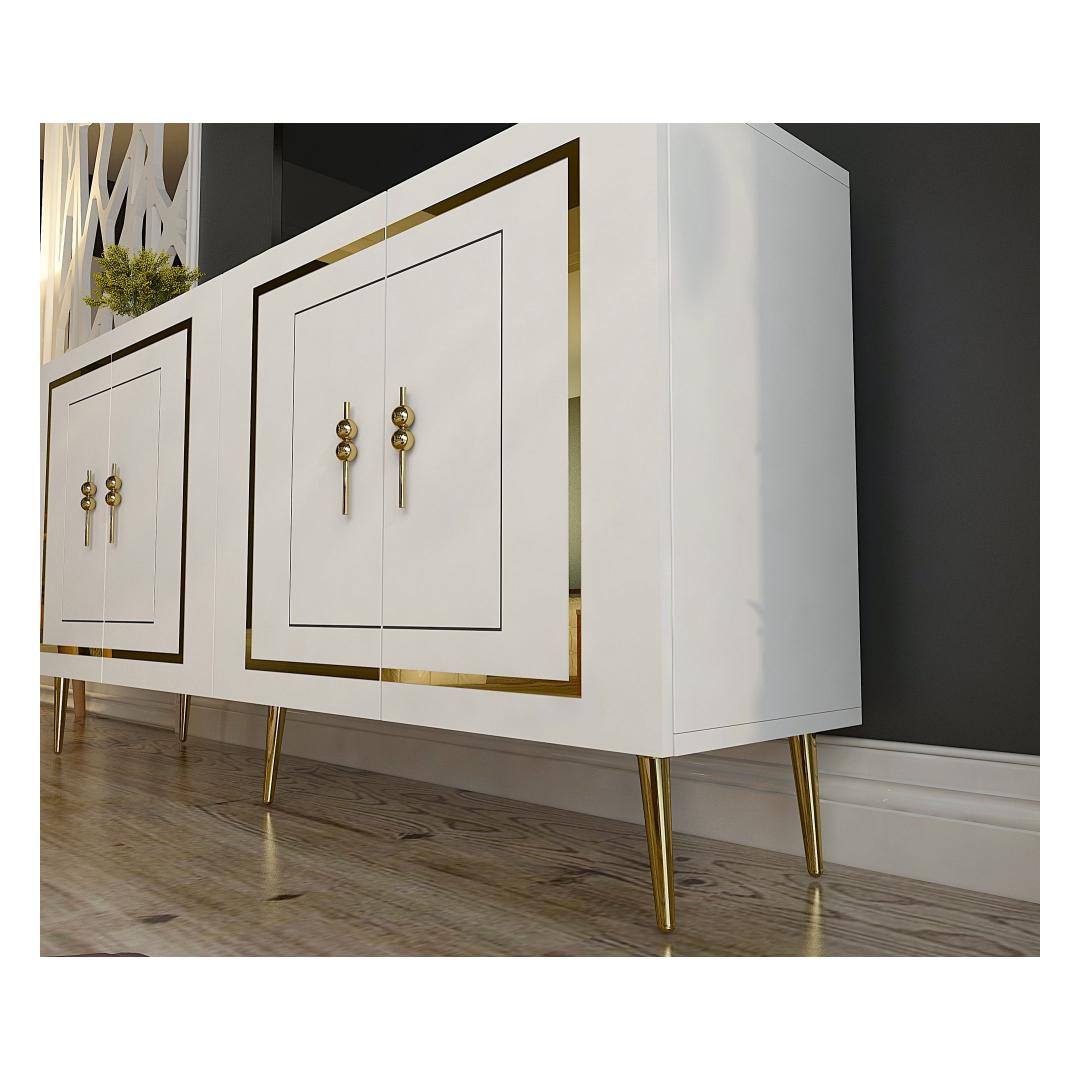 Muuda oma eluruum meie hämmastava konsooliga, mis kiirgab elegantsi ja rafineeritust. Valmistatud 100% melamiinkattega puitlaastplaadist, on see konsool mitte ainult vastupidav, vaid ka uskumatult stiilne. Sleek valge ja kuldne värvikombinatsioon lisab igasse ruumi luksuse puudutuse, muutes selle ideaalseks väljendusdetailiks sinu kodus.Elegantne DisainKonsoolil on kaasaegne disain, millel on puhtad jooned ja minimalistlik esteetika, muutes selle mitmekülgseks lisandiks igasse sisustustiili. 18 mm paksune puitlaastplaat tagab stabiilsuse ja tugevuse, samas kui 150 cm laius pakub piisavalt ruumi sinu lemmik sisustuselementide eksponeerimiseks.Funktsionaalne ja PraktilinePaljude riiulite ja 72 cm laiuse riiuliga pakub see konsool rohkelt hoiuruumi raamatute, fotoraamide ja muude oluliste asjade jaoks. 27 cm riiuli kõrgus võimaldab lihtsat organiseerimist ja eksponeerimist, samas kui 15 cm jala kõrgus lisab kogu disainile rafineerituse.Mitmekülgne ja StiilneOlgu see sinu elutoas, koridoris või magamistoas, see konsool kindlasti tõmbab tähelepanu. Seda saab ka seina külge kinnitada, et tagada lisastabiilsus ja turvalisus, muutes selle praktiliseks valikuks igas ruumis.Tehnilised Üksikasjad:Materjal: 100% melamiinkattega puitlaastplaatPaksus: 18 mmLaius: 150 cmKõrgus: 75 cmSügavus: 35 cmRiiuli Laius: 72 cmRiiuli Kõrgus: 27 cmJala Kõrgus: 15 cmVärv: Valge ja Kuldne Värv: White Gold