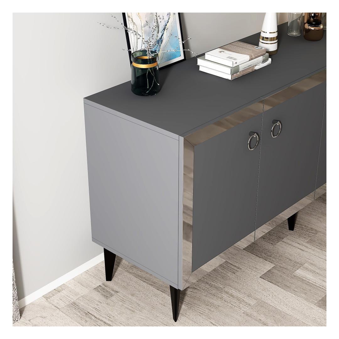 Tutvustame elegantset ja moodsat antratsiidi ja hõbeda värvi konsooli, mis on kohustuslik ese igasse kaasaegsesse koju. See konsool ei ole lihtsalt mööblitükk, see on stiili- ja rafineeritud avaldus. Elegantne disain moodsasse kojuAntratsiidi ja hõbedase konsooli eesmärk on oma puhaste joonte ja keerulise värvikombinatsiooniga tõsta teie eluruumi esile. Antratsiidi ja hõbeda kontrastsed värvid loovad silmatorkava visuaalse efekti, mis koheselt uuendab iga ruumi. Kvaliteetne käsitöö vastupidavuse tagamiseksSee 100% melamiiniga kaetud puitlaastplaadist valmistatud konsool on valmistatud kestma. 18 mm paksus tagab tugevuse ja vastupidavuse, mis teeb sellest praktilise ja pikaajalise investeeringu teie koju. Monitoorne ja funktsionaalneSee 150 cm laiune, 40 cm kõrge ja 79 cm sügavune konsool pakub piisavalt ruumi kõigi oluliste asjade hoidmiseks. Kas te kasutate seda elutoas, koridoris või magamistoas, see sobitub vaevata iga sisustusstiiliga. Tehnilised üksikasjad:Materjal: Materjal: Materjal: Materjal: Materjal: Materjal: Materjal: Materjal: materjal: 100% melamiiniga kaetud puitlaastplaatPaksus: 18mmMõõdud: Paneel on mõõdetud nii, et see ei ole liiga suur: 150cm (laius) x 40cm (kõrgus) x 79cm (sügavus): 150cm (laius) x 40cm (kõrgus) x 79cm (sügavus)Värv: antratsiit ja hõbedane Värv: Anthracite Silver