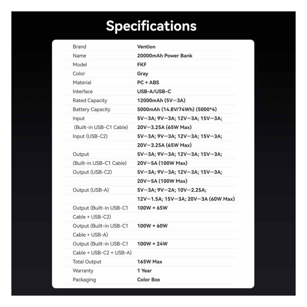 Capacity 20000 mAh