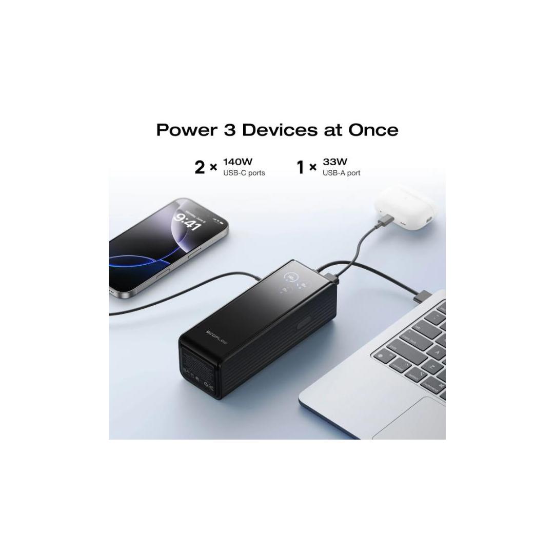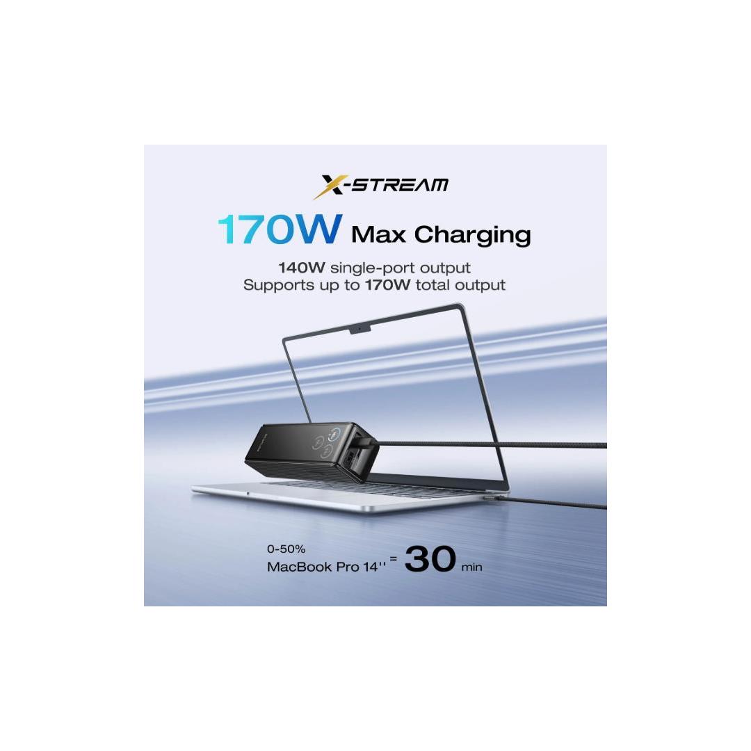 170W Fast Charge: Simultaneous multi-port output up to 170W, supports charging up to 3 devices at the same time. 140W max for single-port charging.