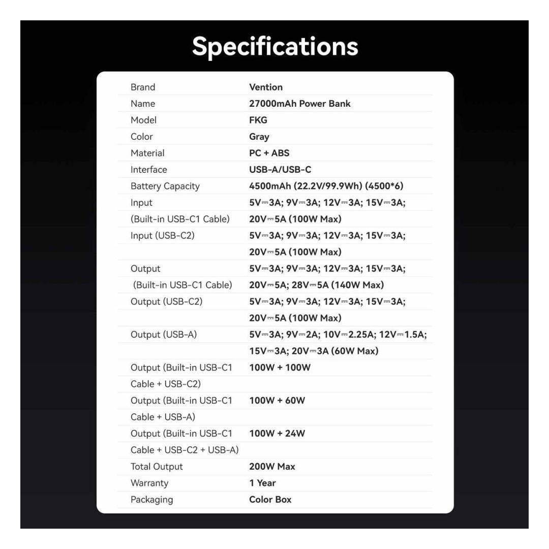 Output voltage 5/9/12/15/20/28 V, Cables included USB Type-C to USB Type-C