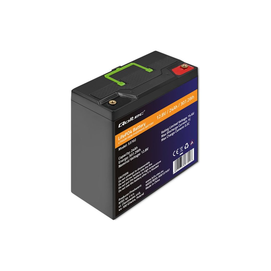 QOLTEC 53702 LiFePO4 lithium iron phosphate battery / 12.8V / 24Ah / 307.2Wh / BMS QOLTEC 53702 LiFePO4 lithium iron phosphate battery / 12.8V / 24Ah / 307.2Wh / BMS