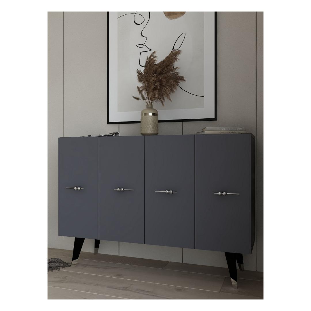 Muuda oma eluruumi meie kauni konsooliga, mis on valmistatud 100% melamiiniga kaetud puitlaastplaadist. See stiilne ja kaasaegne ese on loodud, et tõsta iga ruumi elegantselt hõbedase ja antratsiidi värvikombinatsiooniga.Tõsta oma ruumiLisa oma koju natuke rafineeritust selle konsooliga, mis kiirgab stiili ja klassi. Selle puhtad jooned ja kaasaegne disain teevad sellest ideaalse lisandi igasse elutuppa, koridori või esikusse.Rohke salvestusruumPaljude riiulitega pakub see konsool piisavalt salvestusruumi kõigi sinu oluliste asjade jaoks. Hoia oma raamatud, dekoratsioonid ja muud esemed organiseerituna ja kergesti ligipääsetavana.Mitmekesine disainSeda konsooli saab kinnitada seina külge, et tagada lisastabiilsus ja turvalisus. Selle kompaktne suurus teeb sellest ideaalse valiku väiksematesse ruumidesse, samas pakkudes piisavalt salvestus- ja väljapanekuvõimalusi.Tehnilised andmed:Materjal: 100% melamiiniga kaetud puitlaastplaatPaksus: 18 mmMõõtmed: 120 cm (L) x 80 cm (K) x 29,6 cm (S)Riiuli laius: 57,2 cmRiiuli kõrgus: 27,3 cmJala kõrgus: 20 cmVärv: Hõbe ja antratsiit Värv: Silver Anthracite