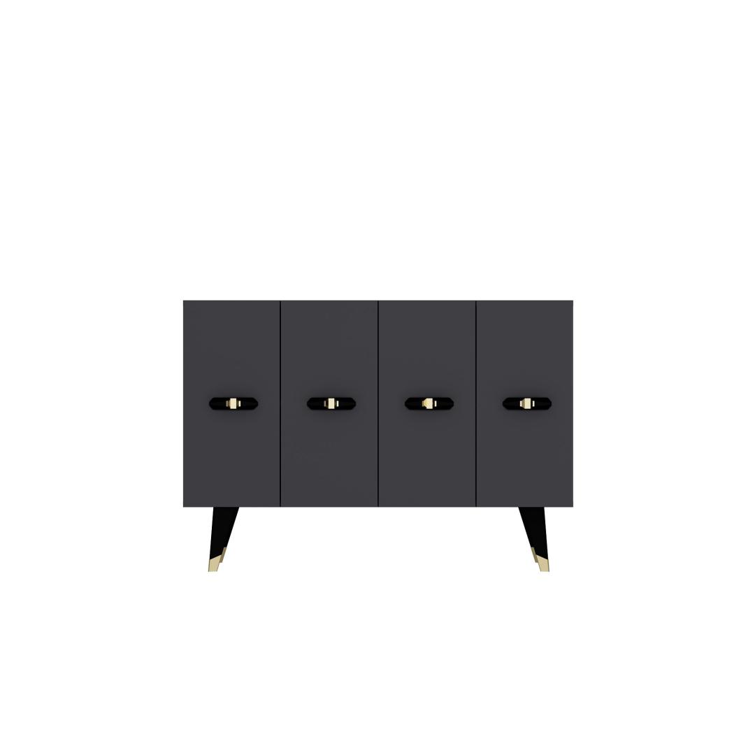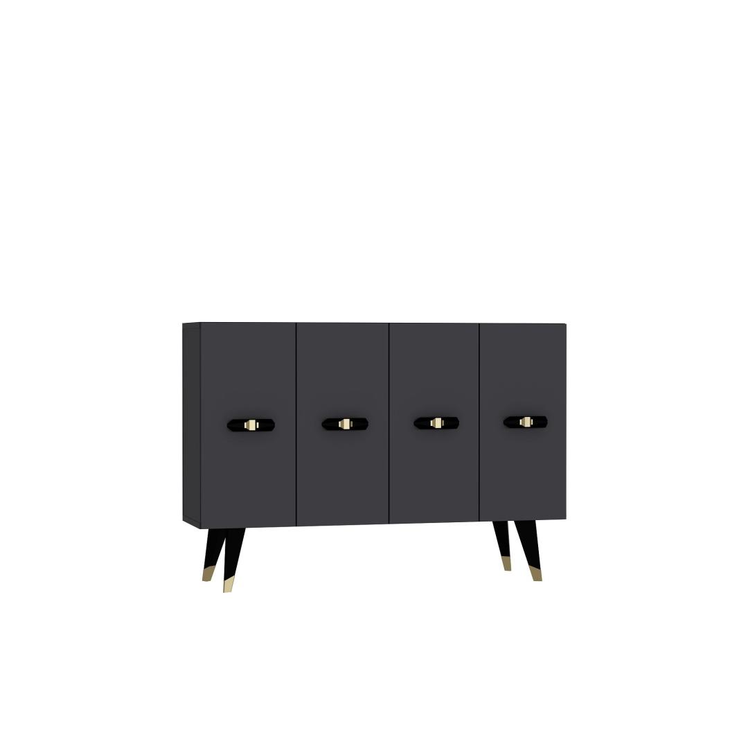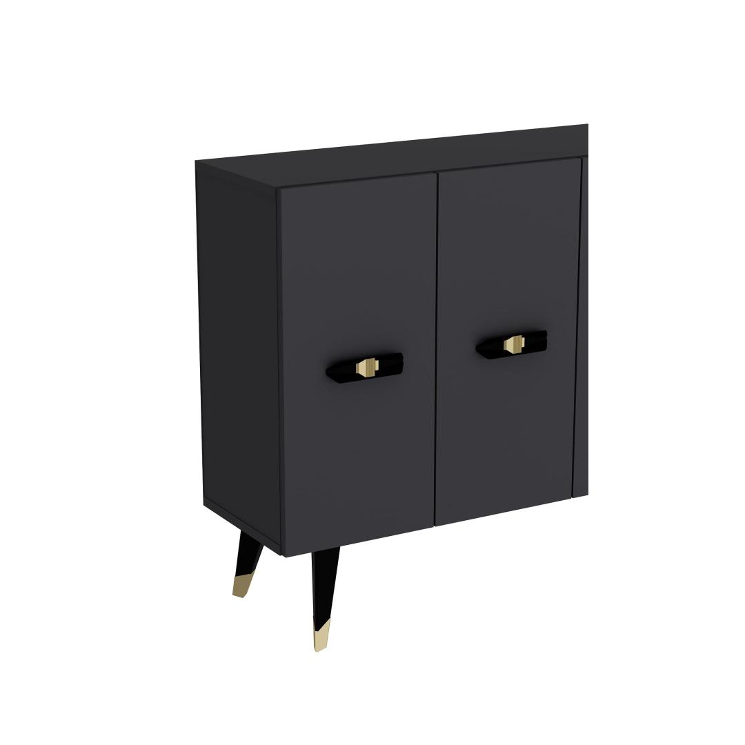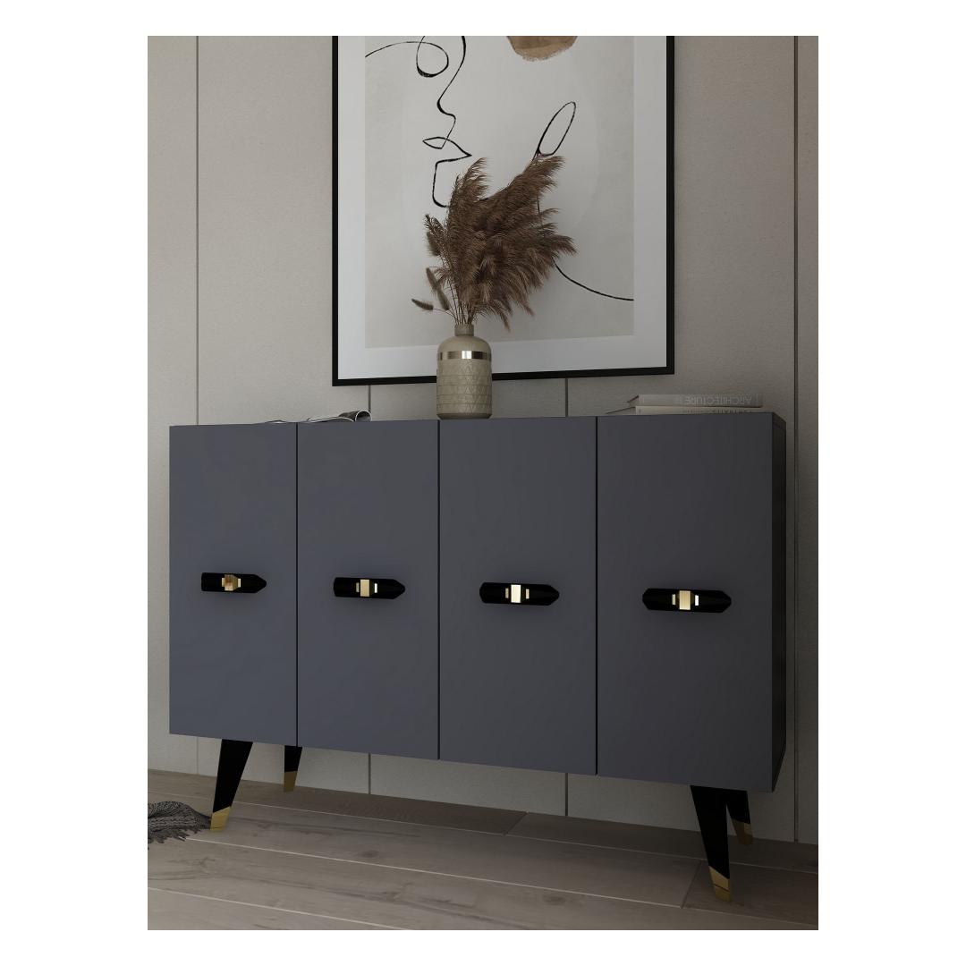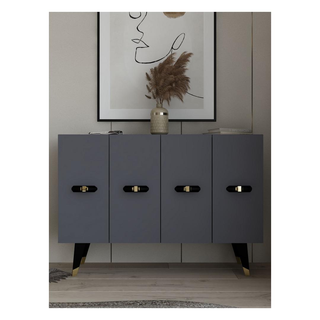 Muuda oma eluruumi meie kauni konsooliga, mis on valmistatud 100% melamiiniga kaetud puitlaastplaadist. See elegantne ese kiirgab rafineeritust ja stiili, muutes selle ideaalseks lisandiks igasse modernsesse koju.Tõsta oma kaunistustLisa oma koju luksuse puudutus meie konsooliga, millel on sujuv disain ja kaunis kuldse ning antratsiidi värvi kombinatsioon. Olgu see siis elutoas, koridoris või magamistoas, see konsool tõstab koheselt sinu kaunistust ja loob igas ruumis šika keskpunkti.Mitmekülgne ja praktilineSelle avarate mõõtmete ja arvukate riiulitega pakub see konsool piisavalt hoiuruumi kõigi sinu oluliste asjade jaoks. Riiulid on ideaalsed sinu lemmik kaunistusese näitamiseks, samas kui tugev konstruktsioon tagab pikaajalise vastupidavuse. Lisaks saab konsooli kergesti kinnitada seina külge, et tagada lisastabiilsus ja turvalisus.Tehke avaldusTehke avaldus meie stiilse konsooliga, mis on loodud muljet avaldama ja inspireerima. Selle kaasaegne esteetika ja kvaliteetsed materjalid teevad sellest hädavajaliku eseme kõigile, kes hindavad peent käsitööd ja kaasaegset disaini. Uuenda oma kodu meie konsooliga ja loo ruum, mis peegeldab sinu ainulaadset stiili ja isikupära.Tehnilised andmed:Materjal: 100% melamiiniga kaetud puitlaastplaatPaksus: 18 mmLaius: 120 cmKõrgus: 80 cmSügavus: 29.6 cmRiiuli laius: 57.2 cmRiiuli kõrgus: 27.3 cmJala kõrgus: 20 cmVärv: Kuldne ja antratsiit Värv: Gold Anthracite