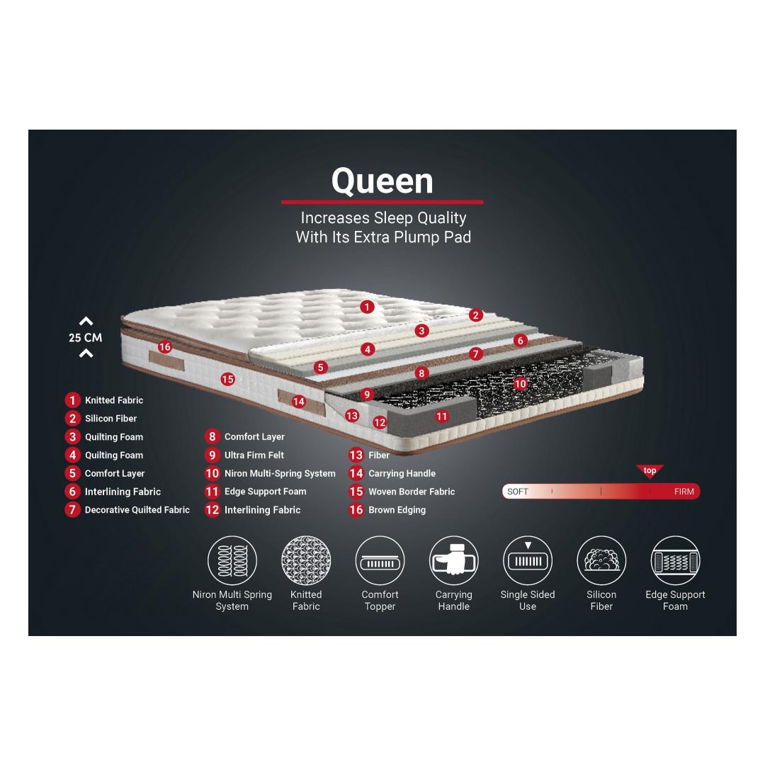 Luksus kodusMuuda oma magamistuba luksuslikuks hotellisviidiks meie kuninganna madratsi abil. See madrats on loodud ülima mugavusega ja pakub teile unenägusid, mis ei ole võrreldavad teistega. Koge ülimatut mugavustQueen madratsil on kohev pehmenduspadi, mis paneb teid tundma, nagu magaksite pilve peal. Jätke hüvasti rahutute öödega ja ärgake üles värskendatuna ja noorendatuna. Tänu mitme vedru süsteemile pakub see madrats optimaalset tuge teie vöökohale, kaelale ja selgroole, tagades mugava ja valuvaba une.Päratu kvaliteetSee hoolikalt valmistatud madrats on valmistatud parimatest materjalidest, mis tagavad vastupidavuse ja pikaealisuse. Riidest kate lisab elegantsust, samas kui dekoratiivne tikitud linasest kangast kangas suurendab üldist esteetilist atraktiivsust. Ülimalt tugev vilt ja servade tugivaht annavad lisastabiilsust ja hoiavad ära vajumise, tagades, et teie madrats säilitab oma kuju aastaid. Esteetiliselt meeldivKuninganna madrats ei paku mitte ainult suurepärast mugavust, vaid lisab teie magamistoale ka rafineeritust. Valge ja pruuni värvi kombinatsioon annab sellele kaasaegse ja stiilse välimuse, mis täiendab mis tahes sisekujundust. Tehnilised üksikasjad:Kate: Kangas: KangasriieÜhepoolne polsterdatudMitme vedru süsteemLaius: 90 cmSügavus: 190 cmKõrgus: 25 cmSilikoonkiudComfort LayerÜlimalt kindel viltServa tugivahtDekoratiivne tepitud linasest kangastKokkupandudUuendage oma uneelamust kuninganna madratsi abil ja nautige hotellisviidi luksust oma kodu mugavuses. Ärge leppige millegi vähemaga kui parimaga. Investeeri kvaliteeti, mugavusse ja stiili meie queen-madratsi abil juba täna. Värv: White Brown