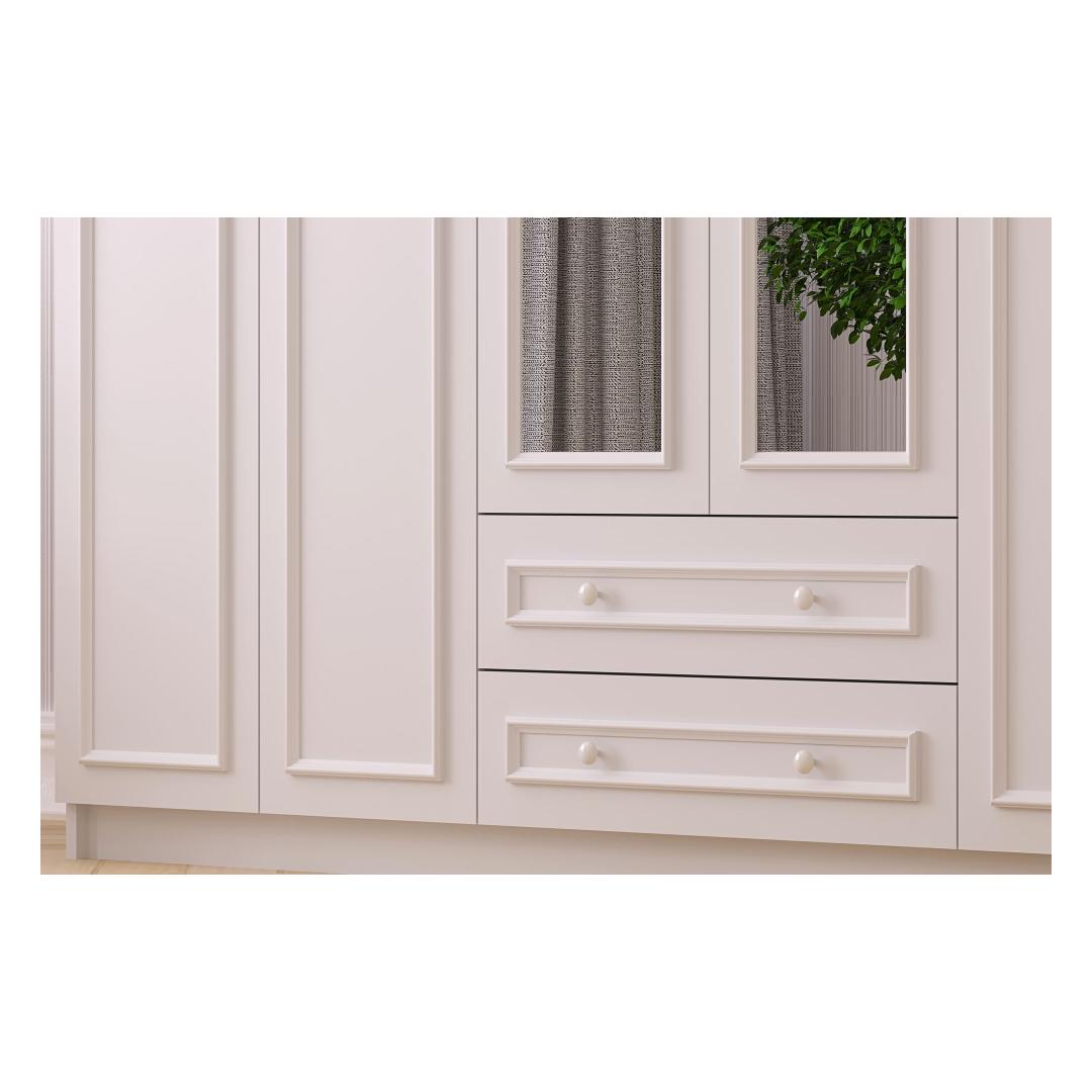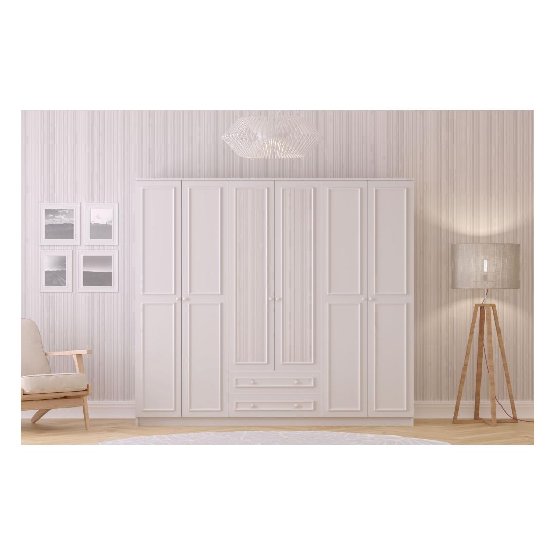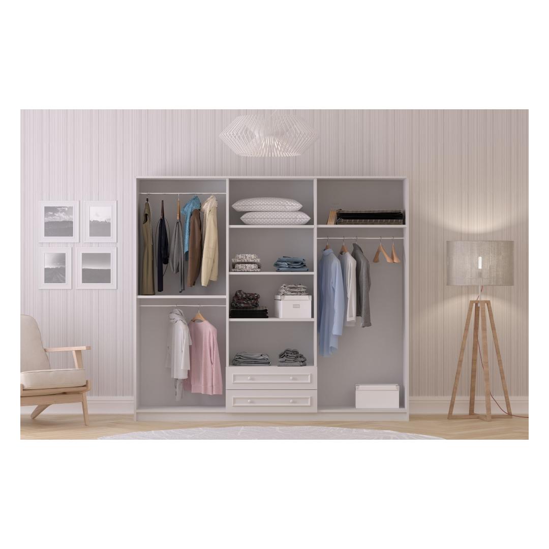 Selle riidekapi sile mattvalge värv lisab igasse ruumi elegantsi. Ükskõik, kas sul on kaasaegne või traditsiooniline sisustus, see riidekapp sulandub sujuvalt ja täiustab sinu ruumi üldilmet.