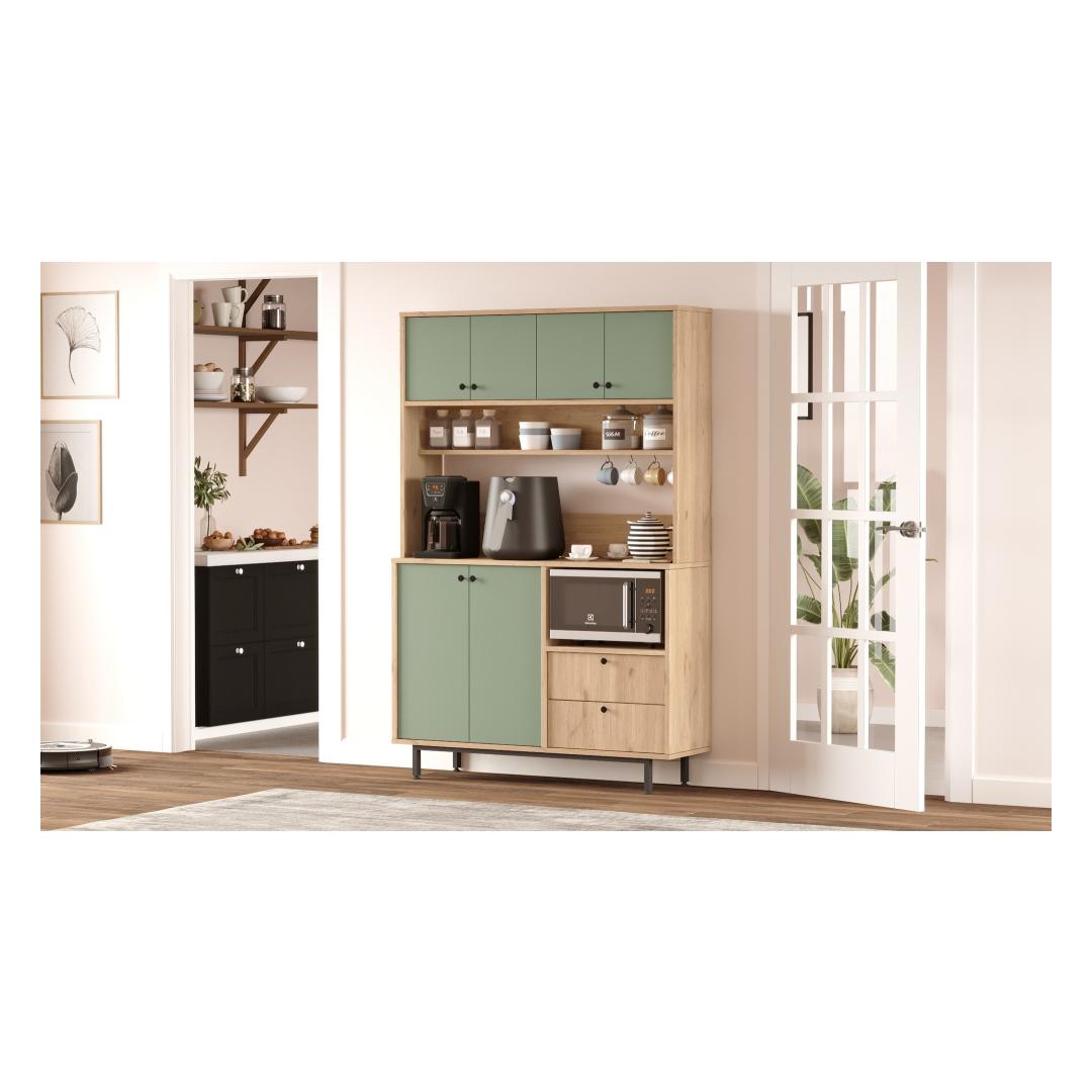 Kas olete väsinud oma kodus valitsevast segadusest ja korrastamatusest? ei vaata kaugemale kui meie uimastava mitmeotstarbelise kapi poole! see kaunis mööblitükk ei ole mitte ainult praktiline, vaid lisab ka elegantsi igasse teie kodu tuppa. Organiseeri oma ruumiArvukate riiulite ja rohke hoiuruumiga kapp sobib ideaalselt kõigi teie asjade organiseeritud ja tõhusaks hoiustamiseks. Ütle hüvasti segadusele ja tere korrastatud ja stiilsele eluruumile!Kvaliteetne käsitööValmistatud 100% melamiiniga kaetud puitlaastplaadist, ei ole see kapp mitte ainult vastupidav ja kauakestev, vaid seda on ka lihtne puhastada ja hooldada. Metalljalad tagavad stabiilsuse ja toe, samas kui tammepuu ja rohelise värvi kombinatsioon lisab teie sisustusele kaasaegse ja rafineeritud puudutuse. Muudatlik disainSeda mitmeotstarbelist kappi saab turvalisuse ja stabiilsuse lisamiseks kinnitada seinale. Tänu elegantsele ja minimalistlikule disainile sobib see ideaalselt teie kodu mis tahes ruumi, olgu see siis elutuba, magamistuba või kodukontor. Ärge oodake enam, et muuta oma ruumi ja tuua korda oma koju. Tellige oma mitmeotstarbeline kapp juba täna ja kogege, kuidas see võib teie elu muuta!Tehnilised üksikasjad:Materjal: materjal: 100% melamiiniga kaetud puitlaastplaatPaksus: 18 mmLaius: 120 cmKõrgus: 180 cmSügavus: 35. 5 cmJalgade kõrgus: 13. 2 cmMetallist jaladVärv: Tamm ja roheline Värv: Oak Green