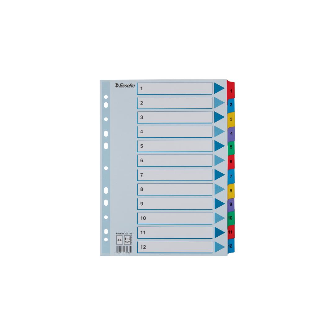 Registri vahelehed ESSELTE A4 1-12 värvi kartong