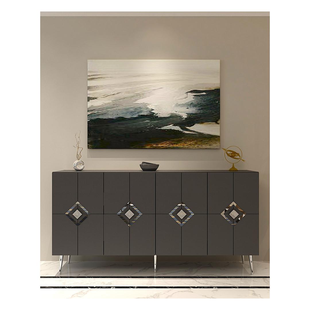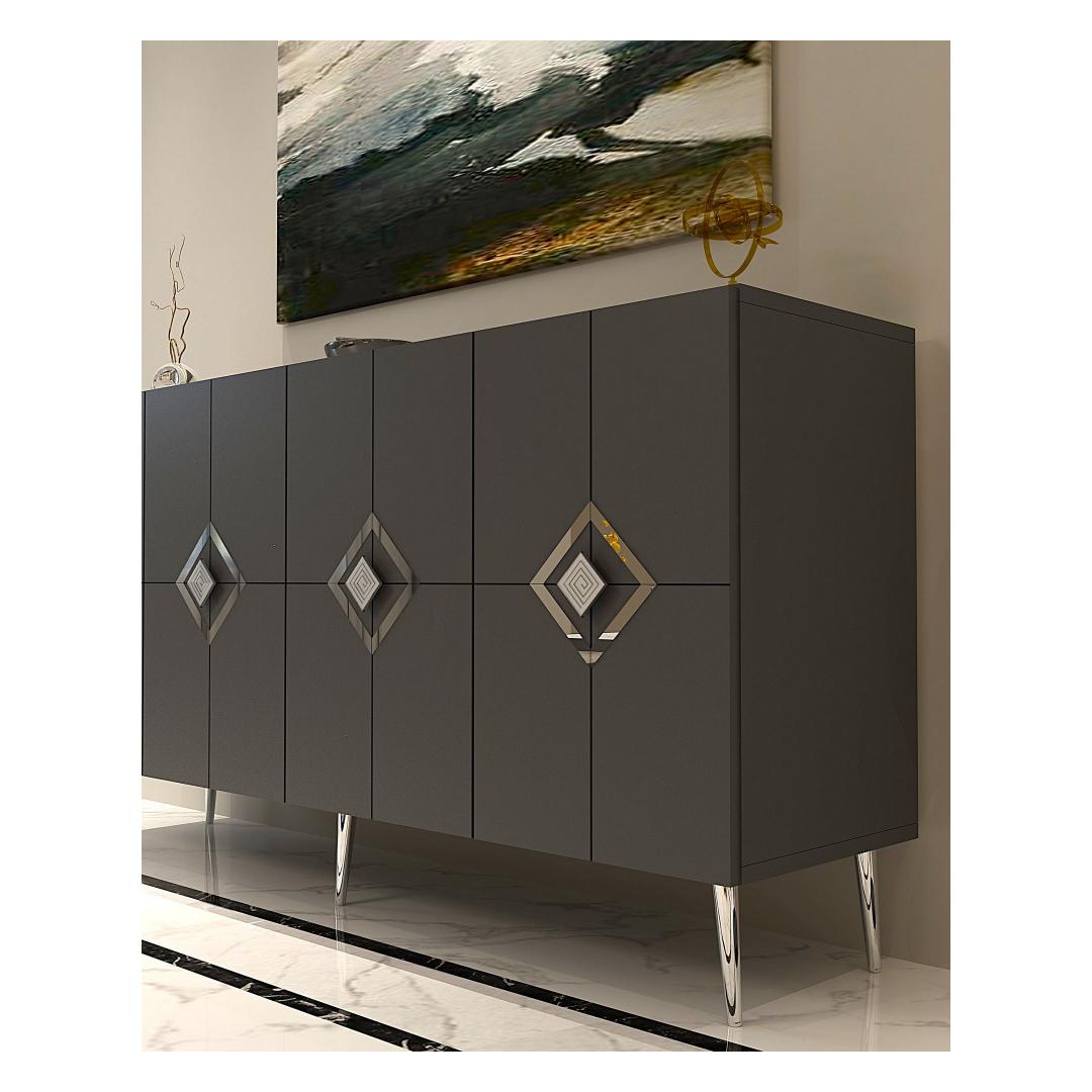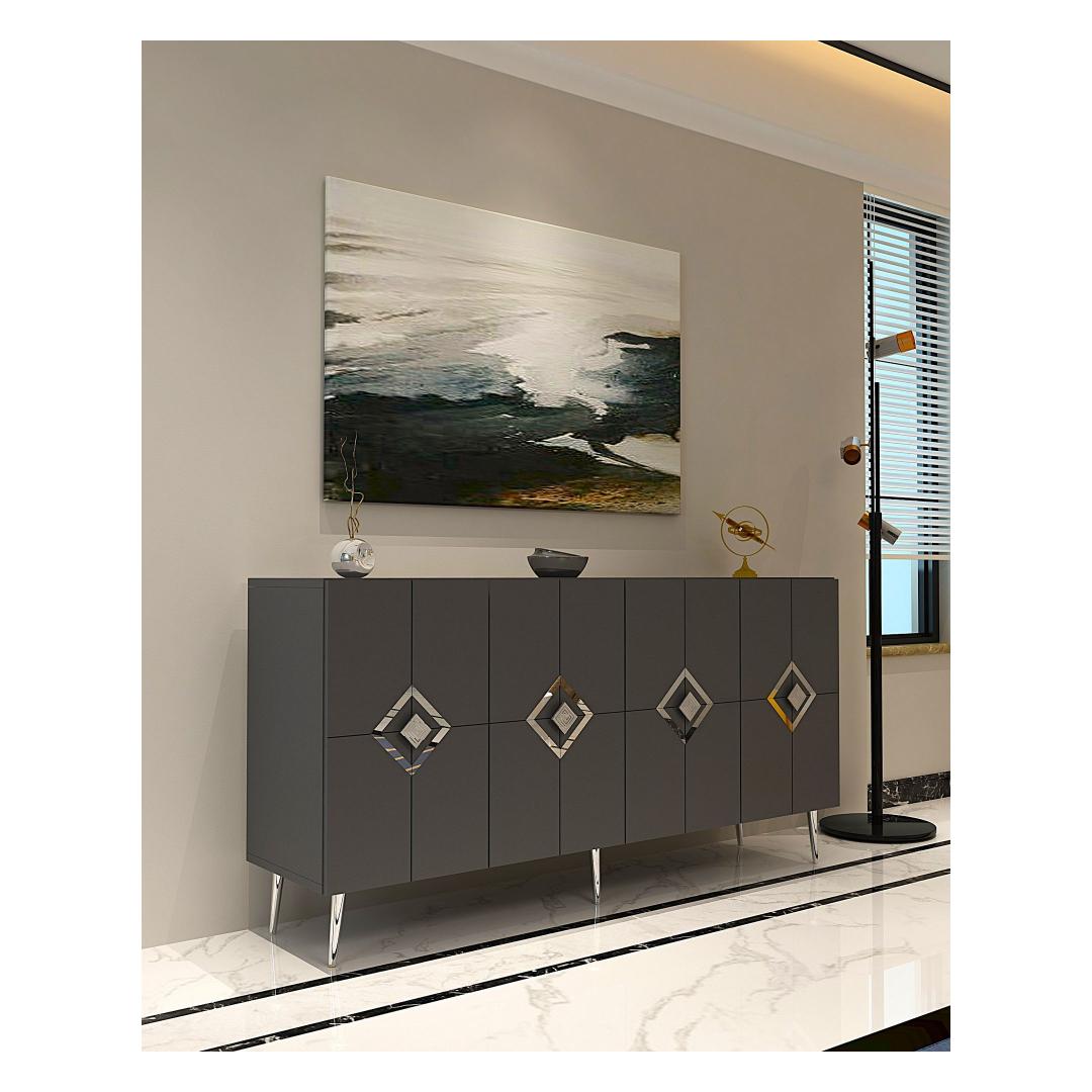 Muuda oma eluruum meie hämmastava konsooliga, mis on valmistatud 100% melamiiniga kaetud puitlaastplaadist. See stiilne ja modernne ese tõstab koheselt iga ruumi stiili, lisades sellele elegantsi ja rafineeritust.Tõsta oma ruumiSelle voolujoonelise disaini ja puhaste joontega on see konsool ideaalne täiendus igasse modernsesse koju. Antratsiidi ja hõbedase värvi kombinatsioon loob silmapaistva kontrasti, mis teeb igas ruumis avalduse.Mitmekülgne ja funktsionaalneSee konsool sisaldab mitmeid riiuleid, pakkudes piisavalt hoiuruumi kõigi sinu oluliste asjade jaoks. Olgu see siis sinu lemmikdekoorielementide väljapanekuks või oma asjade korrastamiseks, see konsool on sama funktsionaalne kui stiilne.Kestlik ja tugevValmistatud 18 mm paksusest melamiiniga kaetud puitlaastplaadist, on see konsool loodud kestma. Tugevad jalad tagavad stabiilsuse ja toe, samas kui võimalus see seina külge kinnitada lisab täiendava turvalisuse.Tehnilised andmed:Materjal: 100% melamiiniga kaetud puitlaastplaatPaksus: 18 mmLaius: 150 cmKõrgus: 75 cmSügavus: 35 cmRiiuli laius: 72 cmRiiuli kõrgus: 27 cmJala kõrgus: 15 cmVärv: Antratsiit ja hõbe Värv: Anthracite Silver