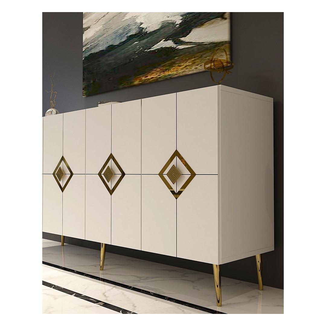 Muuda oma eluruum meie hämmastava konsooliga, mis kiirgab elegantsi ja rafineeritust. Valmistatud 100% melamiinkattega puitlaastplaadist, on see konsool mitte ainult vastupidav, vaid ka uskumatult stiilne. Sleek valge ja kuldne värvikombinatsioon lisab igasse ruumi luksuse puudutuse, muutes selle ideaalseks väljendusdetailiks sinu kodus.Elegantne DisainKonsoolil on kaasaegne disain, millel on puhtad jooned ja minimalistlik esteetika, muutes selle mitmekülgseks lisandiks igasse sisustustiili. 18 mm paksune puitlaastplaat tagab stabiilsuse ja tugevuse, samas kui 150 cm laius pakub piisavalt ruumi sinu lemmik sisustuselementide eksponeerimiseks.Funktsionaalne ja PraktilinePaljude riiulite ja 72 cm laiuse riiuliga pakub see konsool rohkelt hoiuruumi raamatute, fotoraamide ja muude oluliste asjade jaoks. 27 cm riiuli kõrgus võimaldab lihtsat organiseerimist ja eksponeerimist, samas kui 15 cm jala kõrgus lisab kogu disainile rafineerituse.Mitmekülgne ja StiilneOlgu see sinu elutoas, koridoris või magamistoas, see konsool kindlasti tõmbab tähelepanu. Seda saab ka seina külge kinnitada, et tagada lisastabiilsus ja turvalisus, muutes selle praktiliseks valikuks igas ruumis.Tehnilised Üksikasjad:Materjal: 100% melamiinkattega puitlaastplaatPaksus: 18 mmLaius: 150 cmKõrgus: 75 cmSügavus: 35 cmRiiuli Laius: 72 cmRiiuli Kõrgus: 27 cmJala Kõrgus: 15 cmVärv: Valge ja Kuldne Värv: White Gold