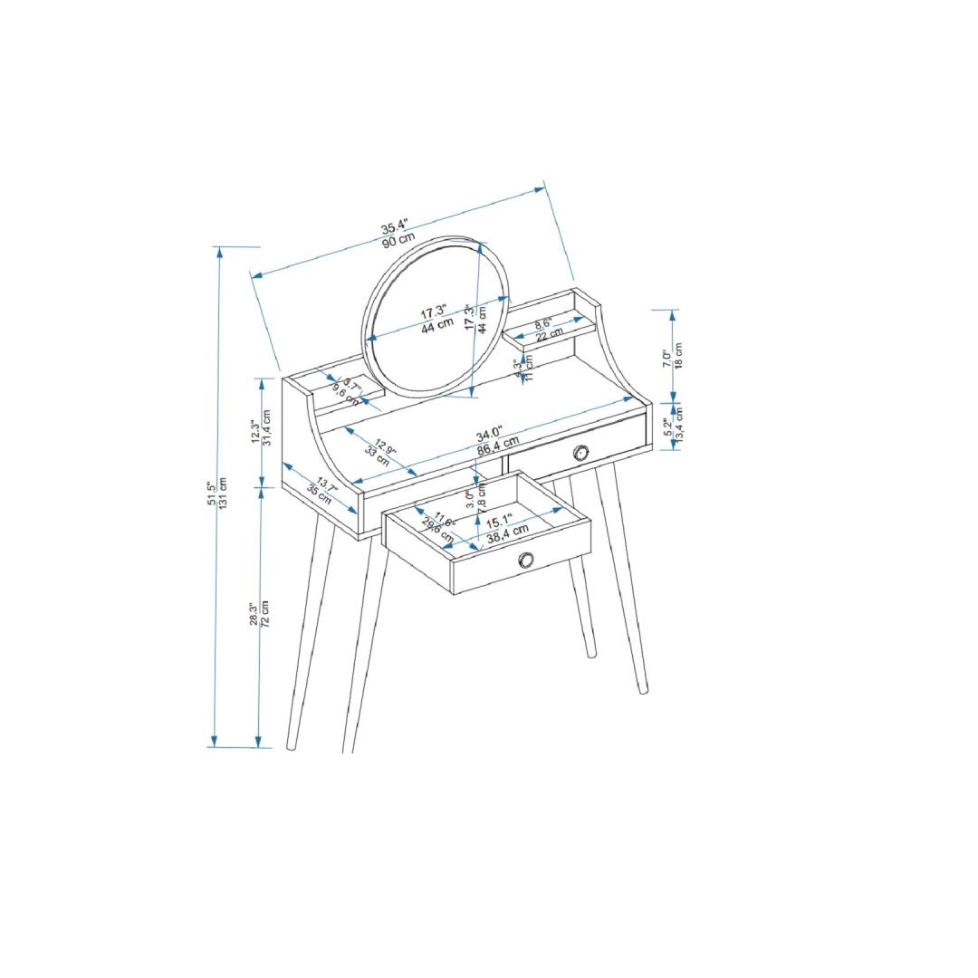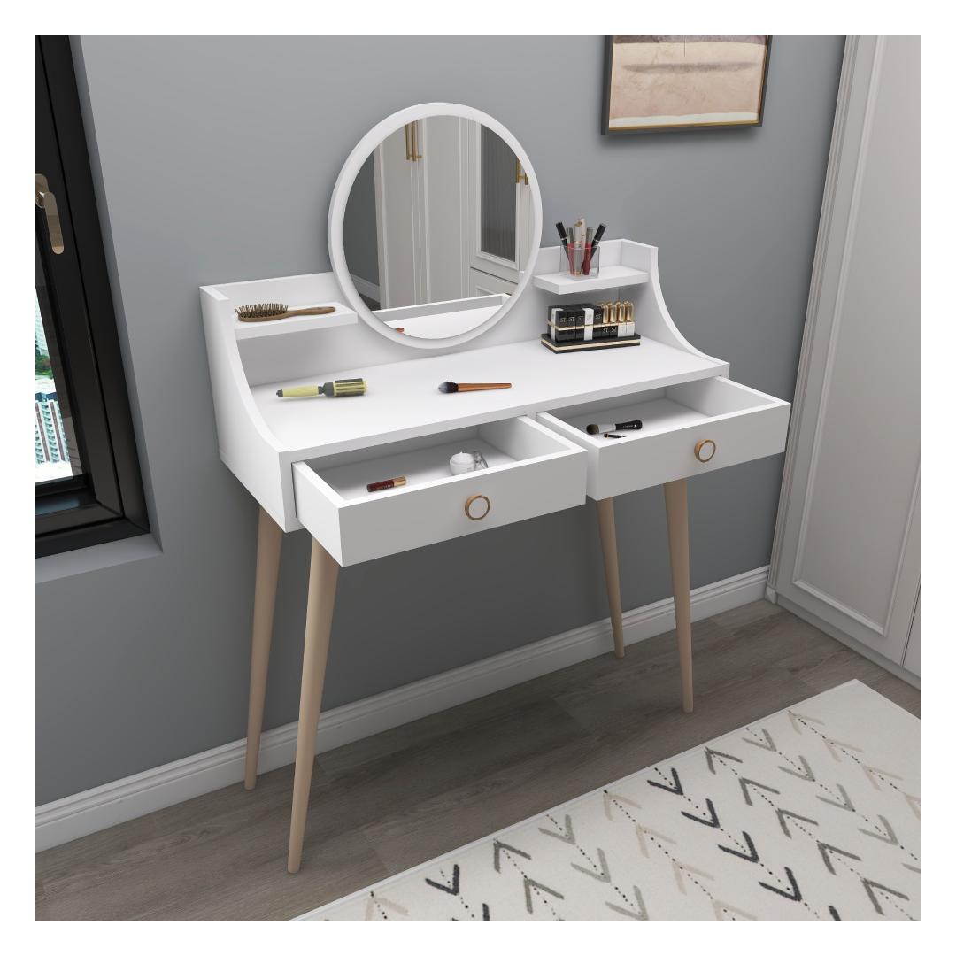 Hellitage luksuslikku ja lummavat hommikurituaali meie peenikese meigilauaga. See uimastav ese on loodud teie ilurutiini täiustamiseks ja lisab teie magamistuppa või garderoobi elegantsi.