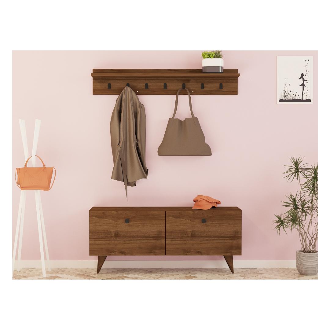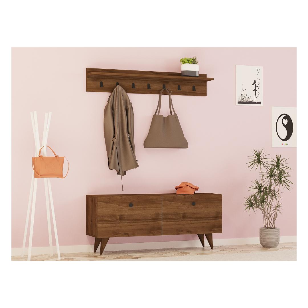 Meie 100% melamiiniga kaetud puitlaastplaadist valmistatud stend on elegantse ja moodsa disainiga, mis sobitub vaevata mis tahes interjööri stiiliga. Pähklipuidust värv lisab sooja ja rafineeritust, muutes selle ideaalseks täienduseks teie koridorile.