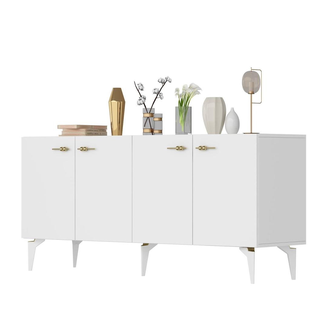 Muuda oma eluruum meie uimastava konsooliga, mis on valmistatud 100% melamiiniga kaetud puitlaastplaadist. See stiilne ja moodne ese lisab elegantsi igasse tuppa, pakkudes samal ajal piisavalt ruumi kõigile vajalikele asjadele. Tõstke oma kodu kaunistustÜtle meie konsooliga hüvasti segadusele ja tere korraldusele. Oma puhaste joonte ja minimalistliku disainiga tõstab see tükk koheselt teie kodu sisekujundust. Ükskõik, kas paigutate selle oma elutuppa, koridori või magamistuppa, see teeb stiilse avalduse. Versatiivne ja funktsionaalneSee konsool ei ole mitte ainult stiilne, vaid ka väga funktsionaalne. Tänu arvukatele riiulitele saate hõlpsasti hoida ja eksponeerida oma lemmikraamatuid, fotosid ja dekoratiivseid esemeid. Riiulid on avarad ja vastupidavad, mistõttu sobivad need ideaalselt ka kõige raskemate esemete hoidmiseks. Lisaks saab konsooli kinnitada seina külge, et see oleks veelgi stabiilsem. Ajatu valge värvusKonsoolil on ajatu valge värv, mis sobib mis tahes värvilahenduse või sisustusstiiliga. Olenemata sellest, kas teie kodu on modernne, traditsiooniline või kusagil vahepealsel alal, sulandub see ese sujuvalt ja täiustab teie ruumi üldist välimust. Tehnilised üksikasjad:Materjal: Materjal: Materjal: Materjal: Materjal: Materjal: Materjal: Materjal: materjal: 100% melamiiniga kaetud puitlaastplaatPaksus: 18 mmLaius: 150 cmKõrgus: 79 cmSügavus: 40 cmJala kõrgus: 19 cmRiiuli laius: 72 cmRiiuli kõrgus: 27 cmVärv: valge Värv: White