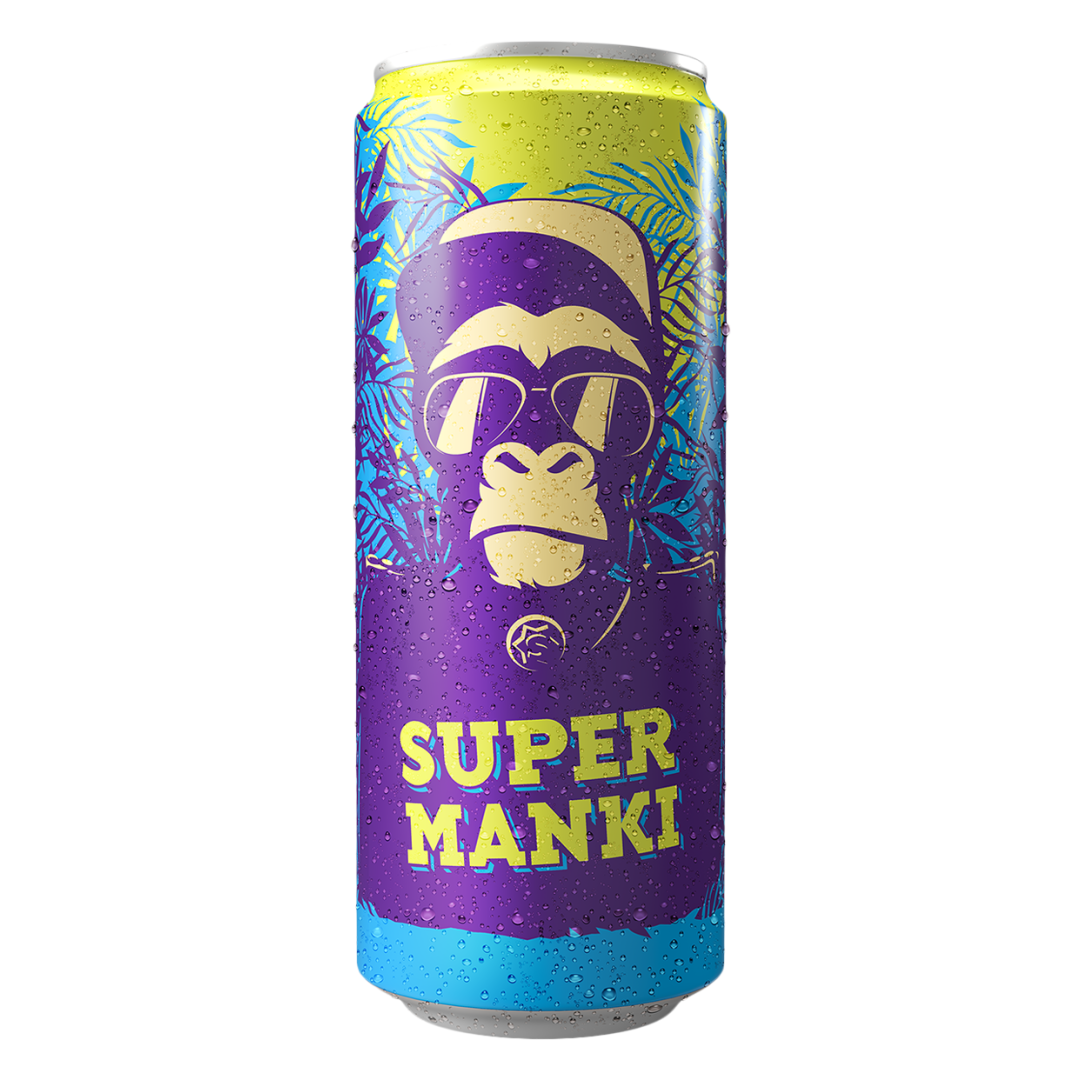 Super Manki on ideaalne asendus energiajookidele. Tegu on energiajoogi maitselise karastusjoogiga. Maitselt on Super Manki nii energiajoogi kui ka limonaadi sõpradele igati mokkamööda. Parajalt magus ja parajalt hapukas. Nii et need, kes joovad energiajooke pigem meeldiva maitse kui ergutuse pärast, leiavad Super Mankist kindlasti selle hea asenduse, mida otsivad. Iseloomult on Super Manki paraja kiiksuga igavusepeletaja. Super Manki ongi tegelikult loodud selleks, et igavus sind alla ei neelaks. Kui aga siiski peaks haigutus peale kippuma, võta üks Super Manki ja värskenda oma meeli ning aktiveeri aju. Igavusepisikul pole parajalt jabura, parajalt cool’i ja parajalt veidra pärdiku vastu mingit šanssi. Super Manki maailma leiad hashtag’i alt #mankibusiness. Soovitame serveerida jää ja laimiviiluga! Serveerida temperatuuril: 5-7C Koostisosad: vesi, suhkur, süsihappegaas, hape - sidrunhape, happesuse regulaator - naatriumtsitraat, lõhna- ja maitseaine, mate ekstrakt (0,02%), toiduvärv ̶ E150d, säilitusaine - E211, vitamiinisegu: niatsiin, vitamiin B6, biotiin, vitamiin B12. Niatsiin - 3,2 mg (20%*) Vitamiin B6 - 0,28 mg (20%*) Biotiin - 10 µg (20%*) Vitamiin B12 - 0,5 µg