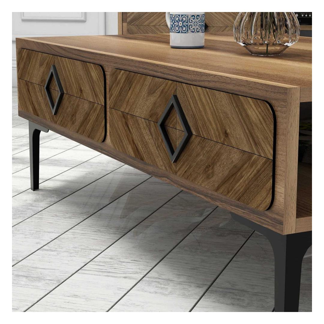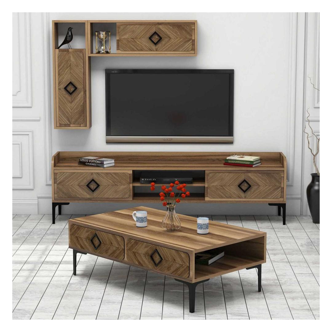 See komplekt sisaldab telerikappi, seinariiuleid ja kohvilauda, mis pakub piisavalt hoiuruumi kõigile teie hädavajalikele asjadele. Arvukad riiulid pakuvad ideaalset kohta oma lemmikraamatute, fotode ja dekoratiivsete esemete esitlemiseks, samas kui kohvilaud pakub mugavat kohta jookide ja suupistete toetamiseks.