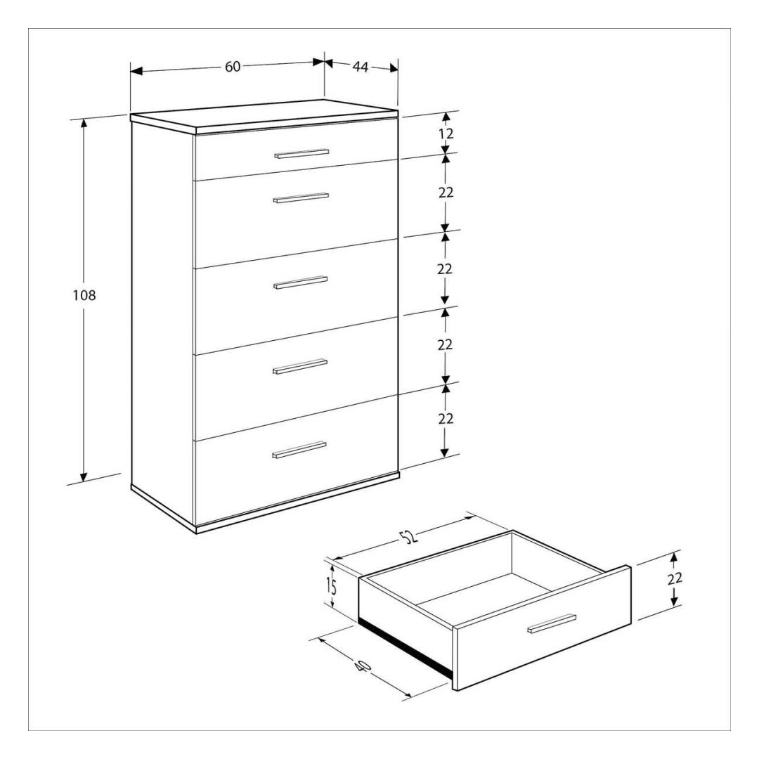 Width: 60 cm Height: 108 cm Depth: 44 cm