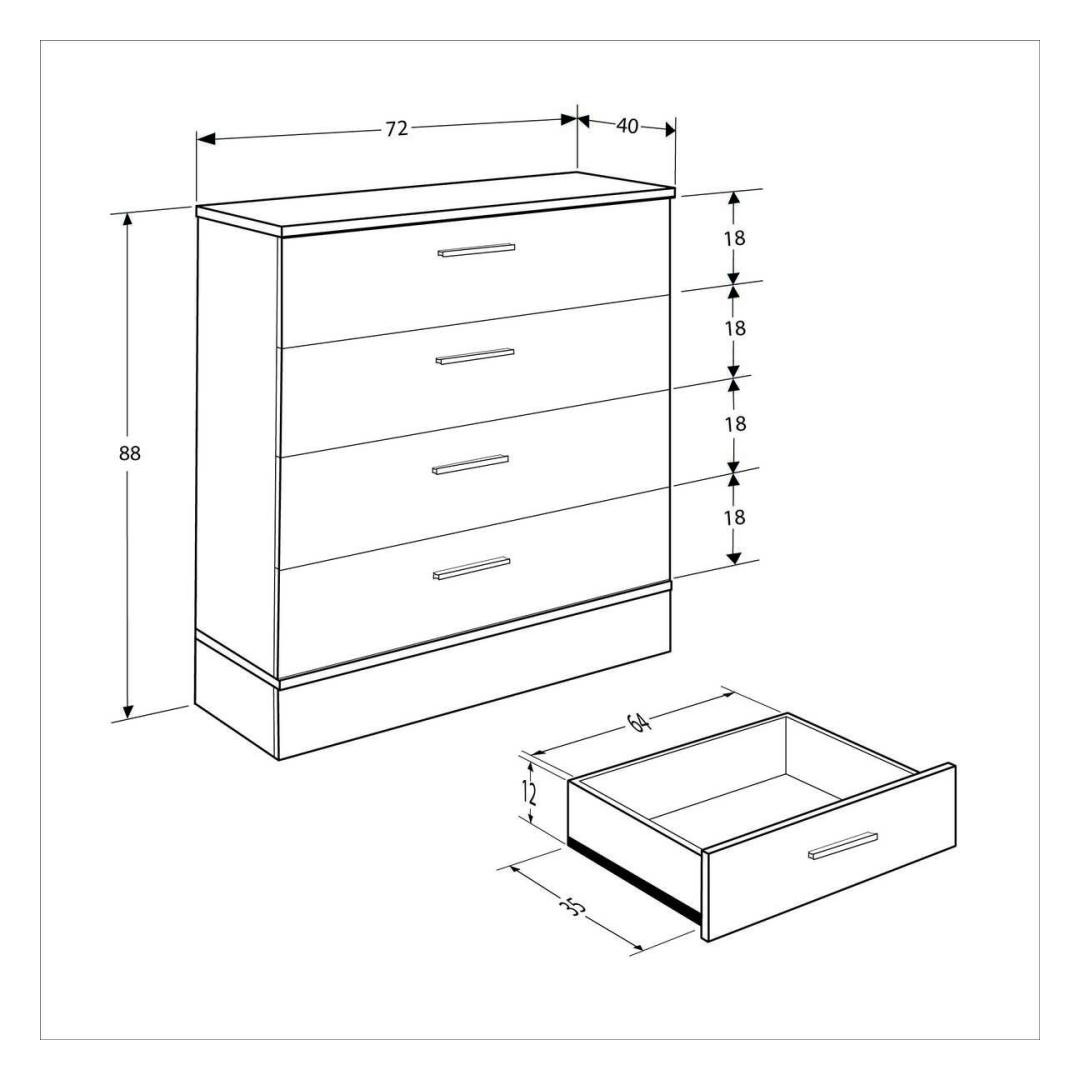 72 cm laiuse, 88 cm kõrguse ja 40 cm sügavuse mõõtmetega kapp on ideaalne suurus igasse magamistuppa. Tänu kompaktsele disainile sobib see sujuvalt igasse ruumi, samas kui võimalus kinnitada see seinale lisab lisastabiilsust ja turvalisust.