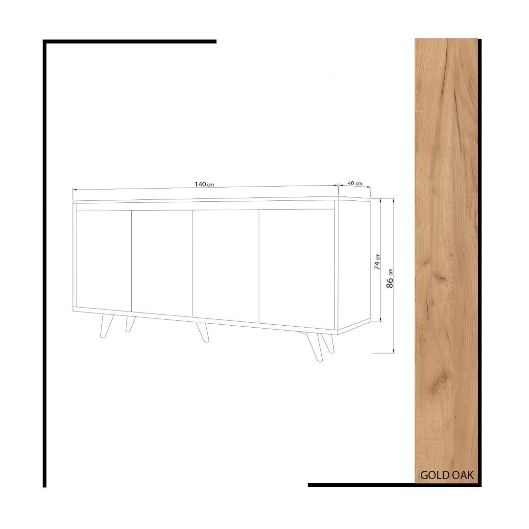 140 cm laiuse, 86 cm kõrguse ja 40 cm sügavusega konsool pakub piisavalt hoiuruumi kõigi teie oluliste asjade jaoks. 18 mm paksus plaat lisab sellele tugevust, samas kui 12 cm jala kõrgus tagab stabiilsuse ja stiili. Rohked riiulid võimaldavad teil oma asju hõlpsasti organiseerida ja eksponeerida.