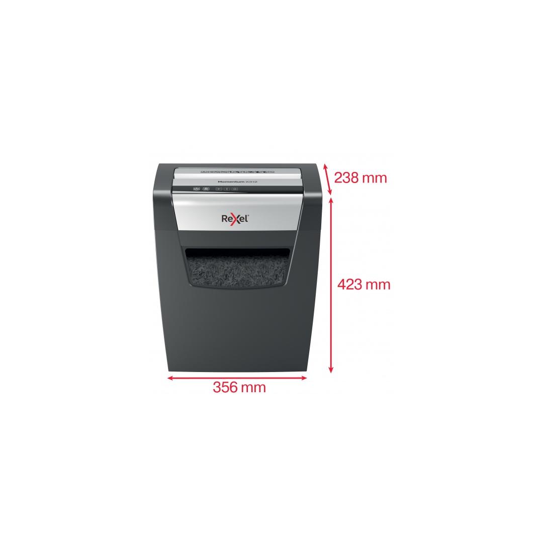 Rexel Momentum X312. Smulkinimo tipas: Smulkinimas mažais gabalėliais, Smulkinimo dydis: 5 x 42 mm, Krepšio apimtis: 23 L. Plotis: 356 mm, Ilgis: 238 mm, Aukštis: 423 mm