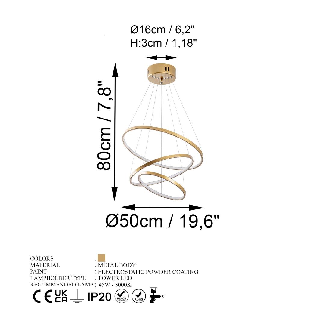 Transformeeri oma ruum elegantselt ja graatsiliseltTutvustame teile meie peen lühtrit, mis on tõeline meistriteos, mis tõstab iga ruumi atmosfääri. Oma uimastava disaini ja laitmatu käsitööga on see lühtri luksuse ja rafineerituse kehastus. Vabastage metalli jõudSee metallkorpusest valmistatud lühtri väljendab tugevust ja vastupidavust. Selle metallist alusplaat tagab stabiilsuse, mis võimaldab teil nautida selle ilu aastaid.Valgustage oma maailmaSee 50 cm laiune, 80 cm kõrge ja 50 cm sügavune lühtri on ideaalse suurusega, et anda endast märku, ilma et teie ruumi üle jõu käiks. 16 cm läbimõõduga ja 3 cm kõrgune alusplaat lisab selle üldisele disainile elegantsust. Valguse sümfooniaSee smd-led-lambipesadega lühtri annab pehme ja sooja valguse, mis loob lummava atmosfääri. Led 28w pesa tüüp tagab energiatõhususe ilma heleduse osas järeleandmisi tegemata. Puudutus rikkalikkusestHellitage selle lühtriga kulla luksuslikku ilu. Selle kuldne värvus lisab igasse ruumi külluslikkust ja rafineeritust, muutes selle ideaalseks keskseks elemendiks teie kodus või kontoris. Tehnilised üksikasjadToote tüüp: Lühike, mis on valmistatud puidust, kuid mitte ülestõstetud..: LühterMetallist korpus tagab vastupidavuseMetallist alusplaat stabiilsuse tagamiseksLaius: 50 cmKõrgus: 80 cmSügavus: 50 cmAlusplaadi läbimõõt: 16 cmAlusplaadi kõrgus: 3 cmIP 20 klassifikatsioon siseruumides kasutamiseksLambipesa tüüp: SMD LEDPesa tüüp: LED 28WVärv: kuldneValgustage oma ruumi elegantseltÄrge jätke kasutamata võimalust muuta oma ruum elegantsi ja graatsia paradiisiks. Lisage see uimastav lühtri kohe oma ostukorvi ja kogege maagiat, mida see toob teie koju või kontorisse. Värv: Gold
