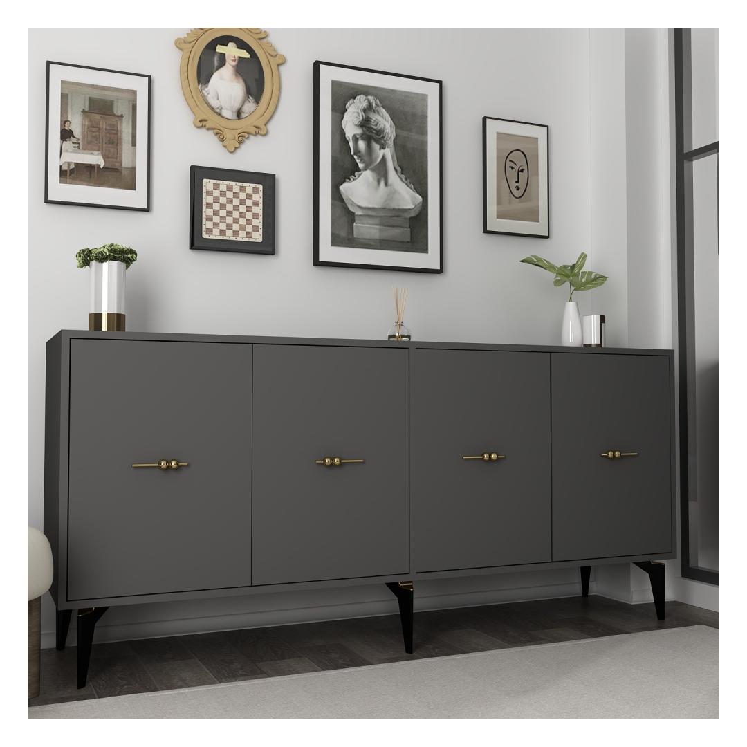 Muuda oma eluruumi meie kauni antratsiidi konsooliga. Valmistatud 100% melamiinkattega puitlaastplaadist, on see konsool mitte ainult vastupidav, vaid ka äärmiselt stiilne. Sujuv disain ja kaasaegne värv tõstavad koheselt iga ruumi teie kodus, luues rafineeritud ja elegantse atmosfääri.Tõsta oma ruumiLisa oma elutuppa, koridori või magamistuppa natuke rafineeritust selle kauni antratsiidi konsooliga. Puhtad jooned ja minimalistlik disain teevad sellest ideaalse lisandi igasse kaasaegsesse kodu sisustusse.Rohke hoiuruumPaljude riiulitega pakub see konsool piisavalt hoiuruumi kõigi teie oluliste asjade jaoks. Hoidke oma raamatud, dekoratiivesemed või elektroonika organiseerituna ja kergesti ligipääsetavana. Riiulid on ka reguleeritavad, võimaldades teil konsooli kohandada vastavalt oma vajadustele.Vastupidav ja funktsionaalneValmistatud 100% melamiinkattega puitlaastplaadist, on see konsool loodud kestma. 18 mm paksus tagab stabiilsuse ja vastupidavuse, samas kui sujuv antratsiidi värv lisab igasse ruumi elegantsi. Konsooli saab ka seina kinnitada, et tagada lisaturvalisus.Tehnilised andmed:Materjal: 100% melamiinkattega puitlaastplaatPaksus: 18 mmLaius: 180 cmKõrgus: 82,6 cmSügavus: 35 cmJala kõrgus: 15 cmRiiuli kõrgus: 29,1 cmVärv: Antratsiit Värv: Anthracite