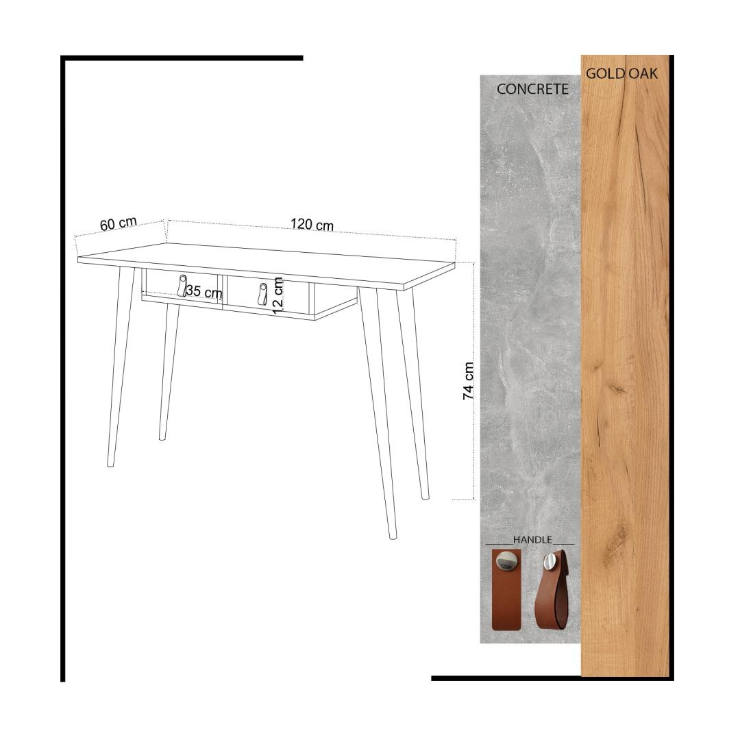 Meie töölaud laiusega 120 cm, kõrgusega 74 cm ja sügavusega 60 cm pakub piisavalt ruumi kõigile teie õppetööks vajalikele asjadele. Kaks sahtlit pakuvad mugavat ruumi raamatute, kirjatarvete ja muude õppematerjalide jaoks. Sahtli suurus 35cm laius ja 12cm kõrgus tagab lihtsa organiseerimise ja ligipääsetavuse.
