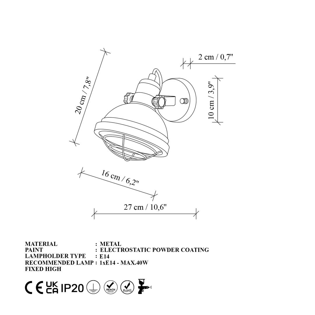 Socket Type: 1 x E 14 Max 40 W