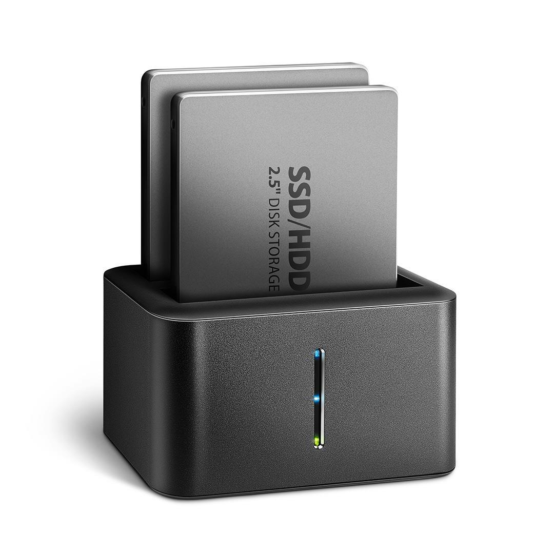 Dual USB 3.2 Gen 1 compact docking station for 2.5" SATA SSD/HDD.