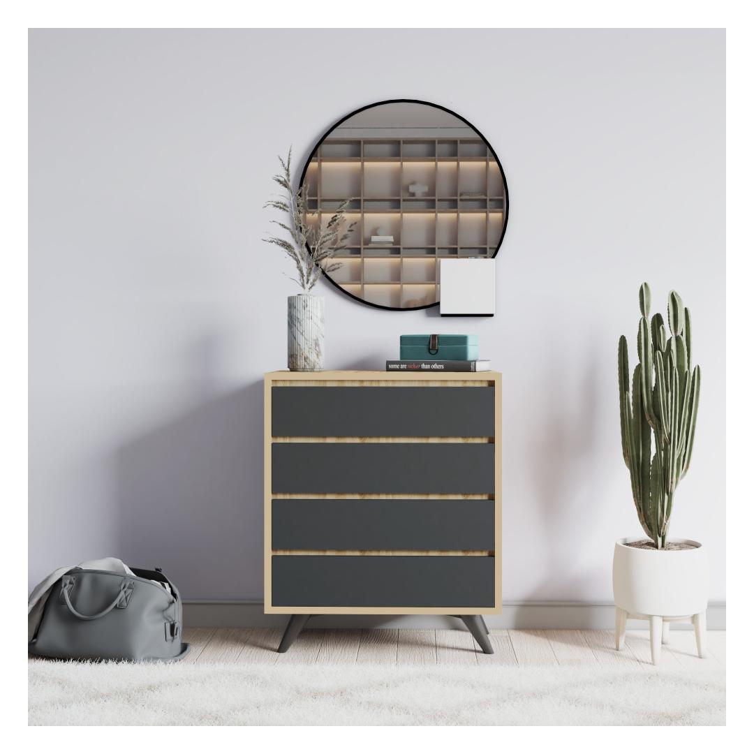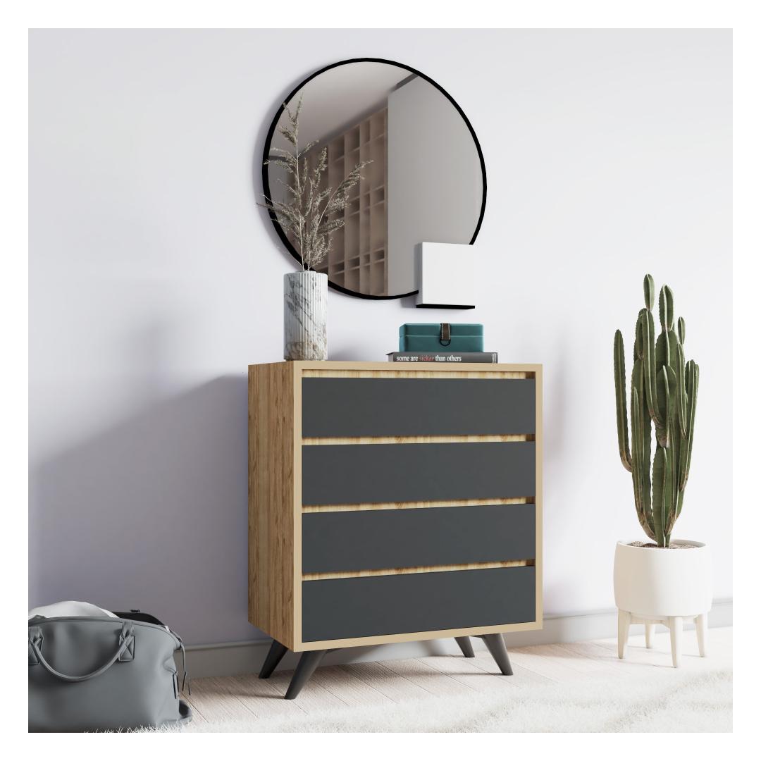 Tutvustame meie uimastavat ja mitmekülgset riidekappi, mis on mõeldud nii funktsionaalsuse kui ka stiili toomiseks teie ruumi. Võrratu hoiuruumSee kapp pakub oma nelja mahuka sahtli ja arvukate riiulitega piisavalt ruumi kõigile teie asjadele. Korraldage oma riided, aksessuaarid ja esmatarbekaubad vaevata, hoides oma ruumi segadusteta ja korras. Esteetiline atraktiivsusKolikukapi ühevärviline disain, milles on kaunis tamme ja antratsiidi segu, lisab elegantsi igasse ruumi. Selle elegantne ja kaasaegne välimus täiendab vaevata mis tahes sisustusstiili, muutes selle ideaalseks täienduseks teie magamistuppa, elutuppa või koridori. Muudatlik ja praktilineSee kapp ei ole mitte ainult esteetiliselt meeldiv, vaid ka väga praktiline. Tänu oma kompaktsetele mõõtmetele (70 cm laius, 86 cm kõrgus ja 40 cm sügavus) sobib see igasse ruumi, olgu see siis suur või väike. Lisaks saab seda hõlpsasti seinale kinnitada, mis tagab stabiilsuse ja ohutuse. Tehnilised üksikasjad:Materjal: materjal: 100% melamiiniga kaetud puitlaastplaatPaksus: 18 mmLaius: 70 cmKõrgus: 86 cmSügavus: 40 cmSahtlite arv: 4Värv: Tamm ja antratsiitParandage oma eluruumi selle tähelepanuväärse kabinetiga ja kogege stiili ja funktsionaalsuse täiuslikku segu. Värv: Oak Anthracite