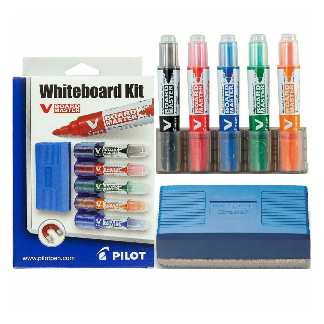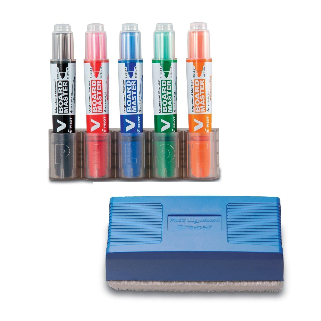 Tahvlimarkerite komplekt + hoidja magnetiga + kustutaja PILOT V Board Master 5 värvi
