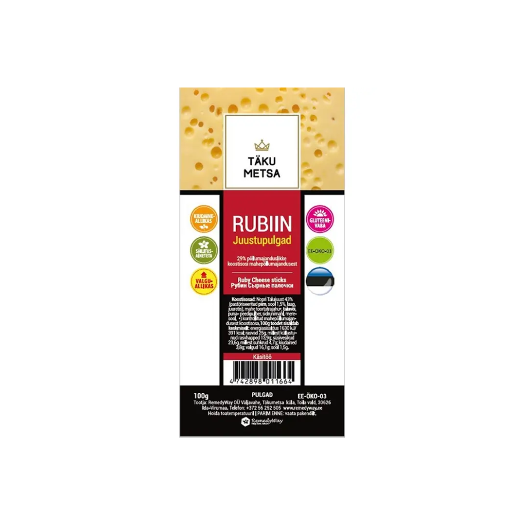 TÄKUMETSA Rubiin juustupulgad 100g gluteenivabad