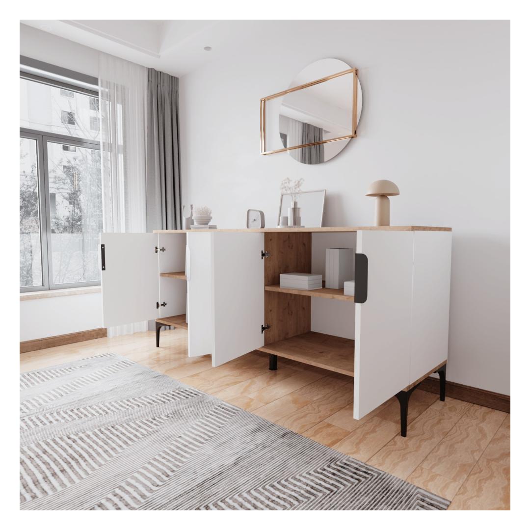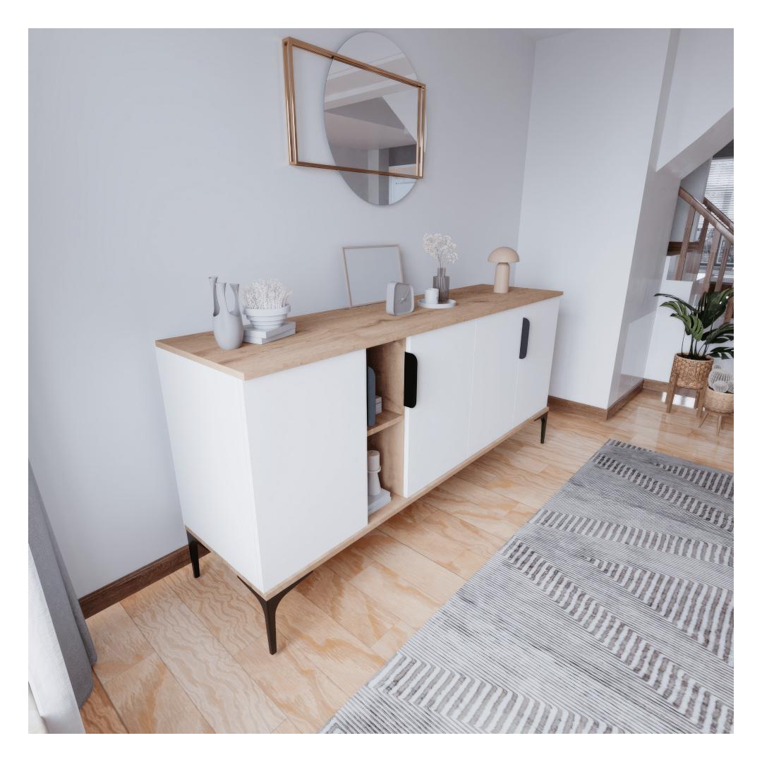 See konsool on valmistatud ülima täpsusega ja detailidele. Ilus tamme- ja valgete värvide kombinatsioon lisab keerukust, sulandudes vaevata mis tahes olemasoleva sisekujundusega.