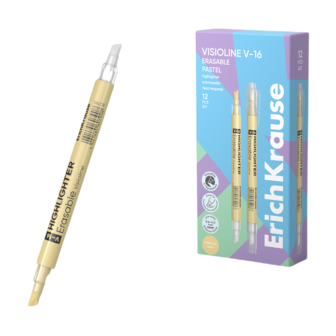 Tekstimarker kahe otsaga ERICH KRAUSE Visioline V-16 kustutatav pastelne kollane