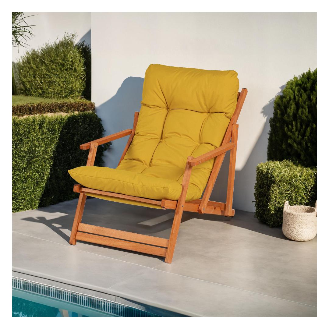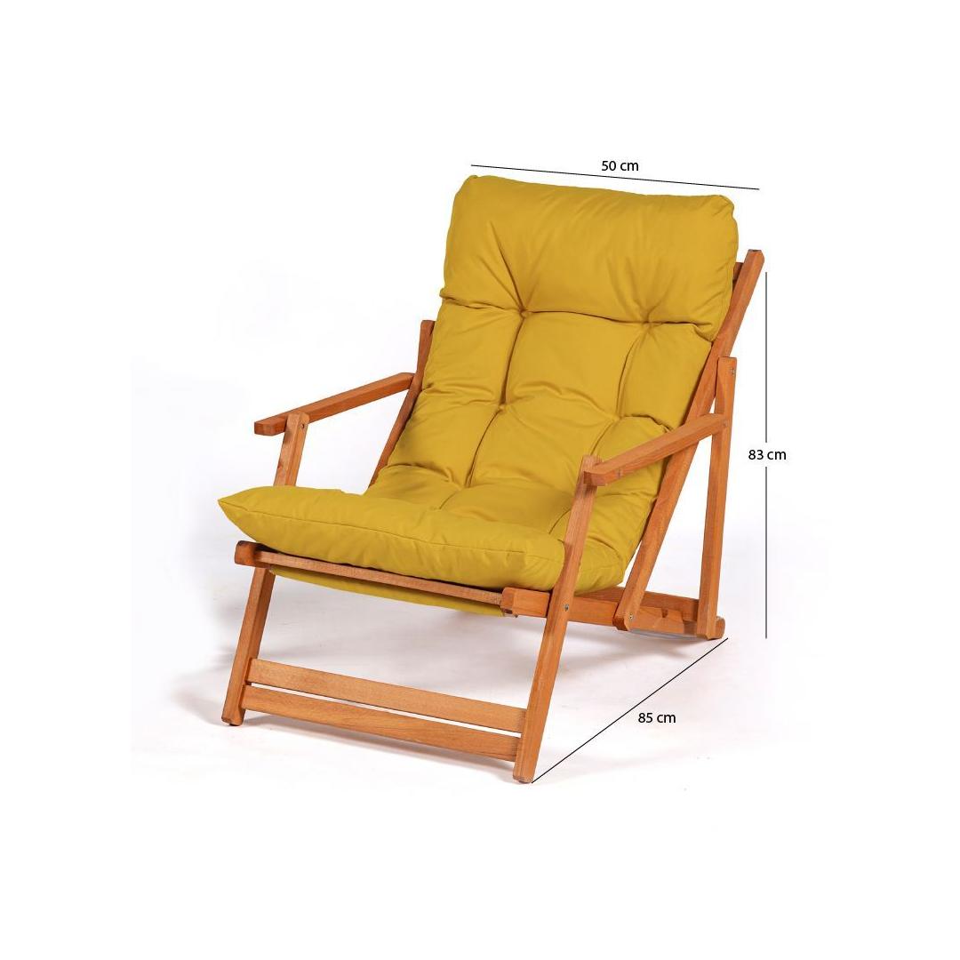 Muuda oma välistingimustes olev ruum rahulikuks oaasiks meie kauni Aia Tooliga. Valmistatud 100% pöögipuust, kiirgab see tool elegantsi ja rafineeritust. Loomulik puidust viimistlus lisab rustikaalset võlu, samas kui erksad kollased aktsendid toovad sinu aeda või terrassile värvi.Relax in StyleKujuta ette, kuidas sa lõõgastud selles mugavas toolis, nautides päikest ja ümbritseva ilu. Olgu see siis hommikul kohvi juues või õhtul klaasi veini nautides, see tool pakub ideaalset kohta lõõgastumiseks ja rahunemiseks.Kestlik ja VastupidavValmistatud kvaliteetsest pöögipuust, on see tool loodud kestma. Veepõhine puidukaitse värv tagab, et see on kaitstud ilmastiku eest, nii et saad seda nautida aastaid. Lisaks muudavad ökoloogilised materjalid selle jätkusuutlikuks valikuks sinu välimööbli kollektsioonis.Tehnilised Andmed:Materjal: 100% PöögipuuIlma LakkimataSuurus: Laius: 50 cm, Kõrgus: 81 cm, Sügavus: 50 cmKokku panduna: 150 cmVeepõhine Puidukaitse VärvVärv: Kollane ja Loomulik Värv: Yellow Natural