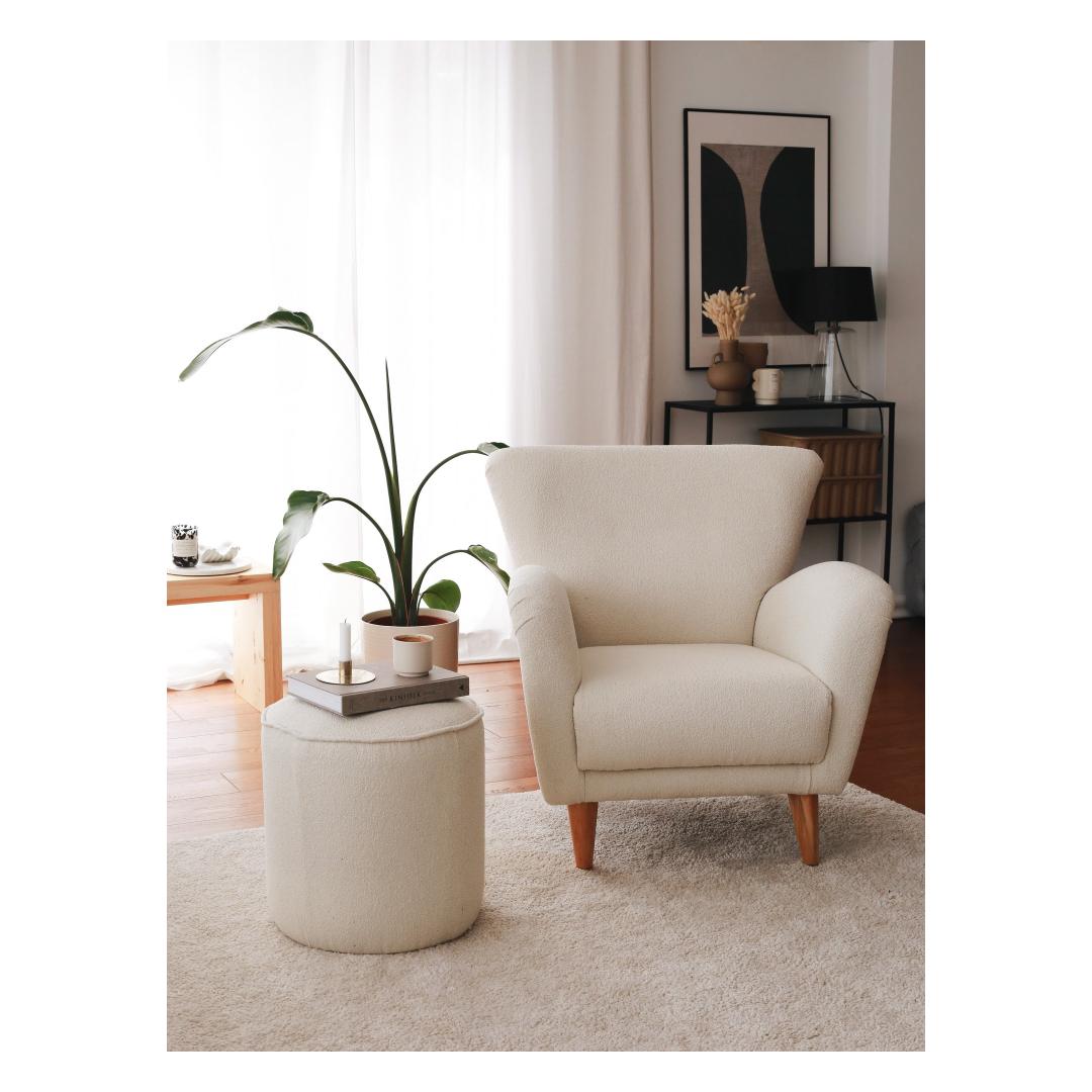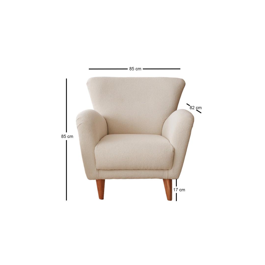Kogege ülimat mugavust ja elegantsust meie tiibtooligaMuutke oma elutuba luksuslikuks paradiisiks meie suurepärase tiibtooliga. See ülima täpsusega ja detailidele tähelepanu pöörates valmistatud tool on loodud pakkuma teile ülimat mugavust ja stiili. Lõbutsege võrratu mugavusesVajutage meie tiibtooli pehmete padjadesse ja kogege sellist mugavust, mida te ei ole kunagi varem kogenud. Pehme ja hubane teddy-kangas ümbritseb teid sooja embusse, muutes selle ideaalseks kohaks, kus pärast pikka päeva lõõgastuda ja lõõgastuda. Tõstke oma kodu esteetikatAjatu disaini ja elegantse siluetiga on meie tiibtool ideaalne täiendus igale kodu sisustusele. Lihtne puidust raam lisab elegantsust, valge värv aga lisab teie ruumile puhtuse ja rahulikkuse tunnet. Võrratu vastupidavus ja kvaliteetMeie 100% puidust raamist valmistatud tiibtool on valmistatud kestma. Tugev konstruktsioon tagab, et see peab vastu igapäevasele kasutamisele ning säilitab oma kuju ja ilu aastaid. Tehnilised üksikasjad:Raam: PUIT: 100% PUUSTKangas: .Laius: 85 cm Kõrgus: 85 cm Sügavus: 82 cmIstumiskõrgus: 43 cmJalgade kõrgus: 17 cm30 DNS 10 cm / 24 DNS Feather 5 cmElustage oma elutuba meie tiibtooliga ja kogege täiuslikku segu mugavusest, elegantsist ja vastupidavusest. Tellige kohe ja tõstke oma kodu sisustus uutesse kõrgustesse! Värv: White
