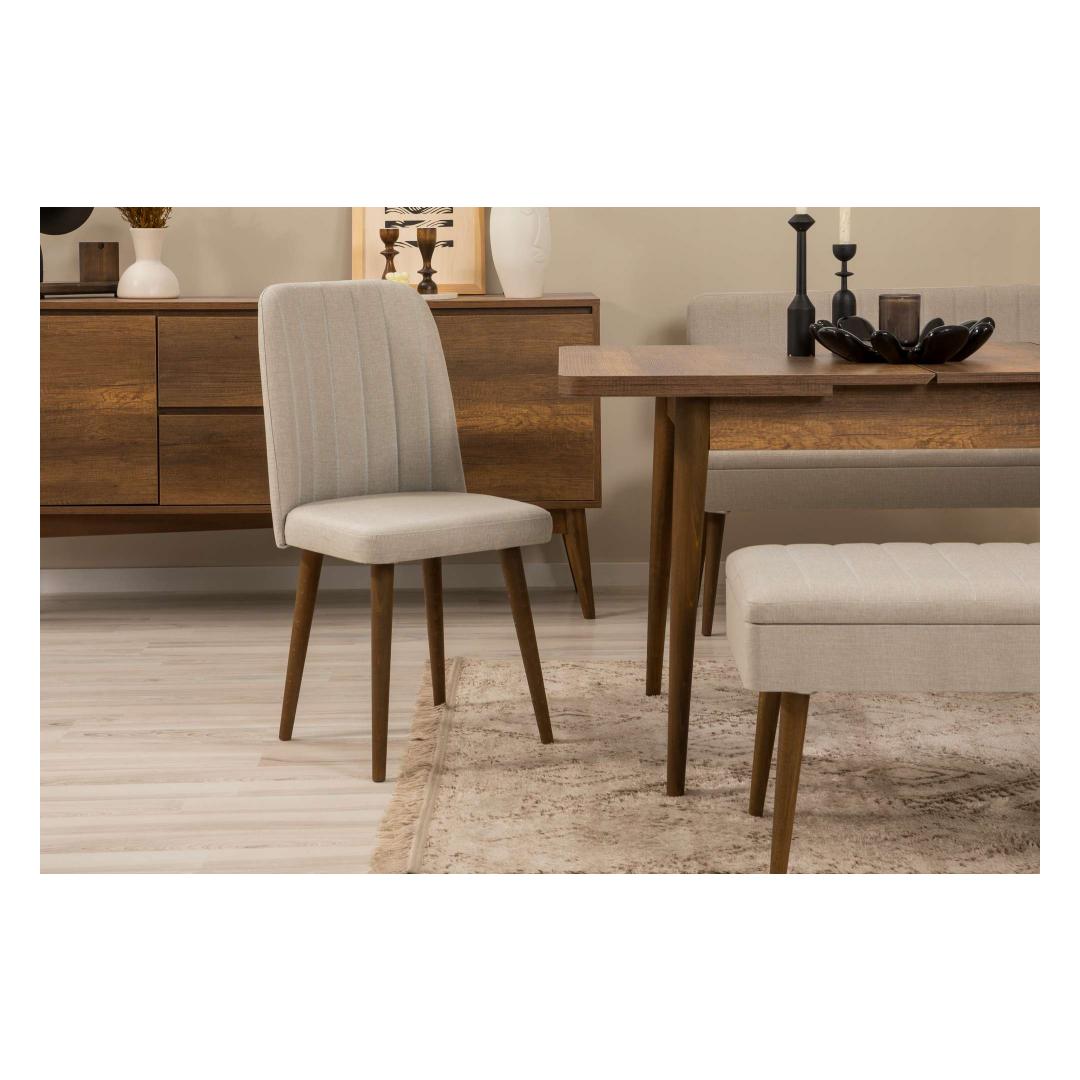 Toolil on voolujooneline disain sarapuu jalgadega, mis lisab igasse ruumi rafineeritust. Pähkli- ja tumesinise värvikombinatsioon loob modernse ja šiki ilme, mis sobib igasse sisustustüüpi.