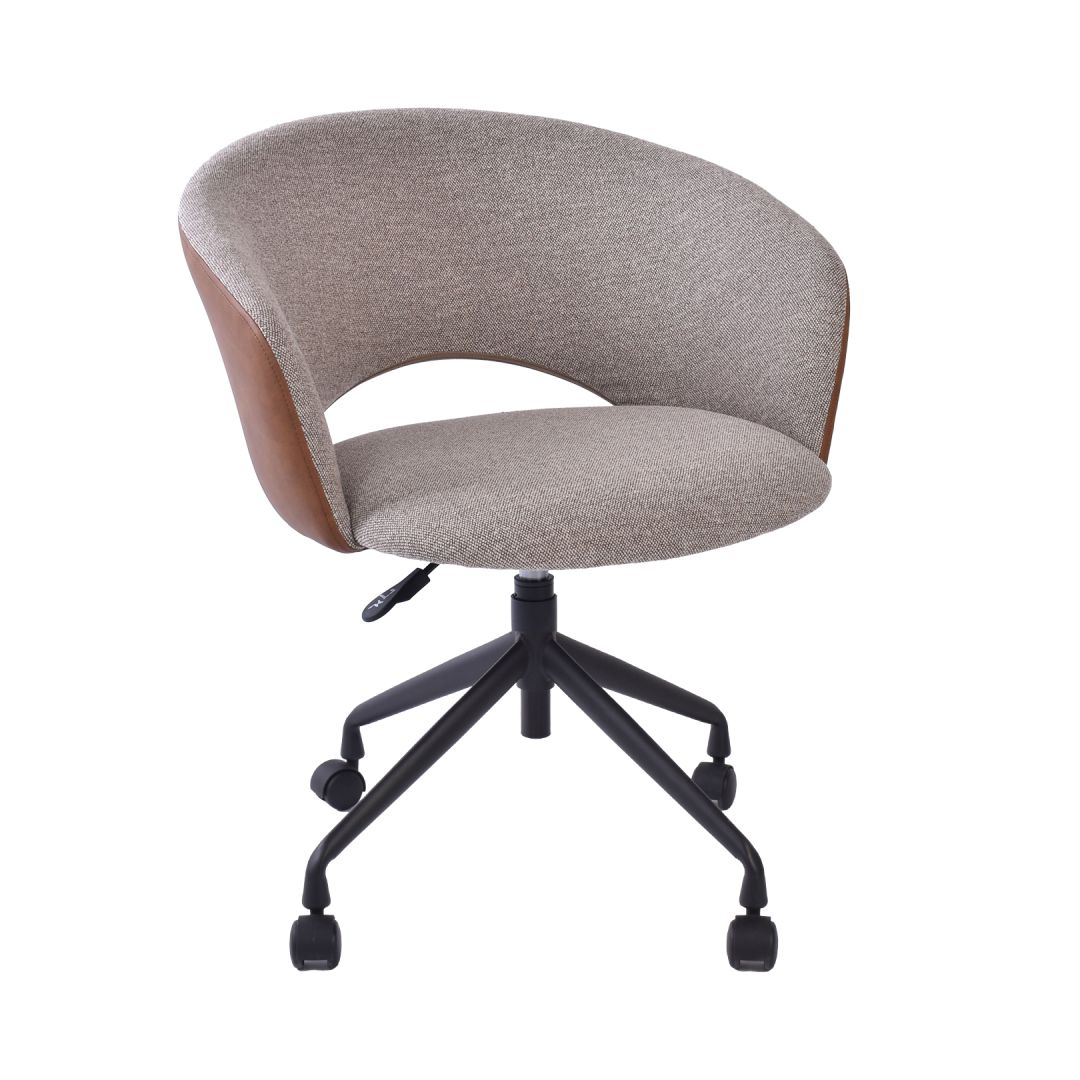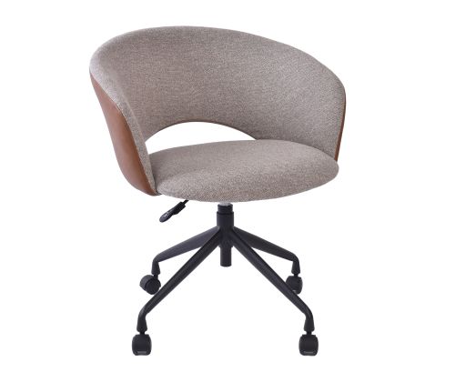 Töötool KARINA ratastega 62x60xH68-74cm, beež/helepruun. Tooli iste ja seljatugi on kergelt polsterdatud ja kaetud beeži polüesterkangaga. Seljatoe väliskülg on kaetud helepruuni kunstnahaga. Tooli istme kõrgus on reguleeritav gaasamordi abil. Tooli neljaharuline plastikratastega metallist jalg on viimistletud musta pulbervärviga.