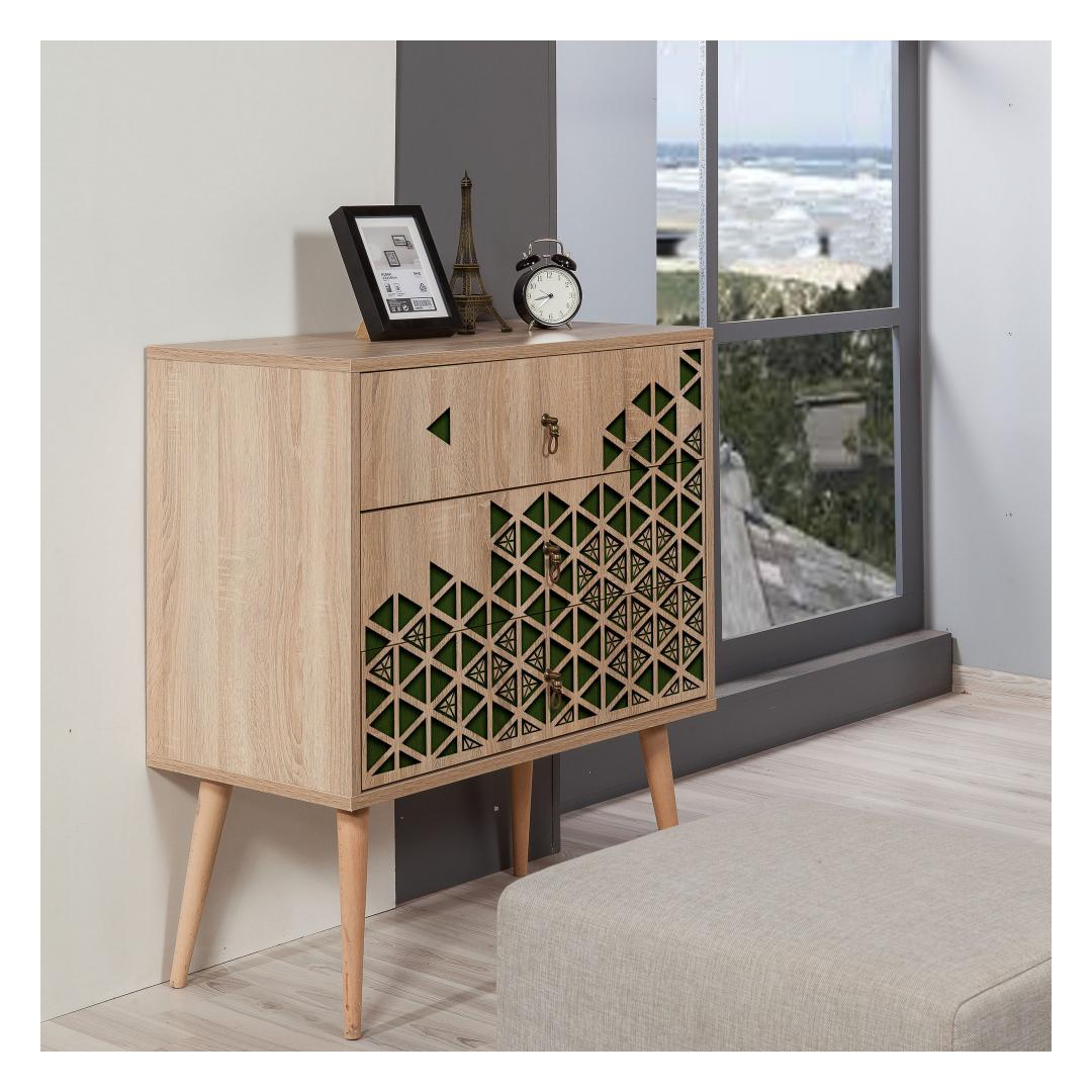 See 100% melamiiniga kaetud puitlaastplaadist valmistatud kapp on valmistatud kestma. 18 mm paksus tagab tugevuse ja pikaealisuse, samas kui sarvepuu jalad tagavad stabiilsuse ja toe. Metallist ja köiega käepidemed lisavad üldisele disainile elegantsi ja rafineeritust.