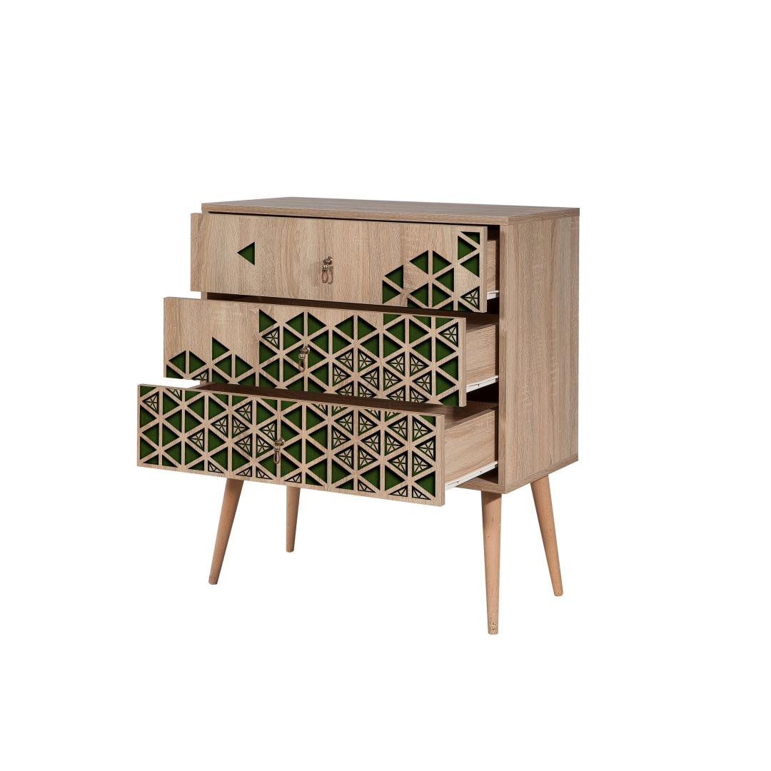 Kolme mahuka sahtli ja arvukate riiulitega kapp pakub palju hoiuvõimalusi teie riiete, aksessuaaride ja muu jaoks. Sahtli kõrgus on 18. 5 cm võimaldab teil oma asju kenasti korraldada, samas kui täiendav hoiuruum pakub mugavust ja funktsionaalsust.