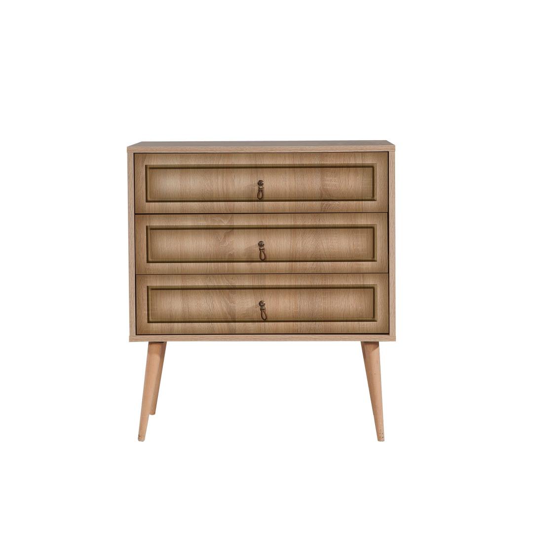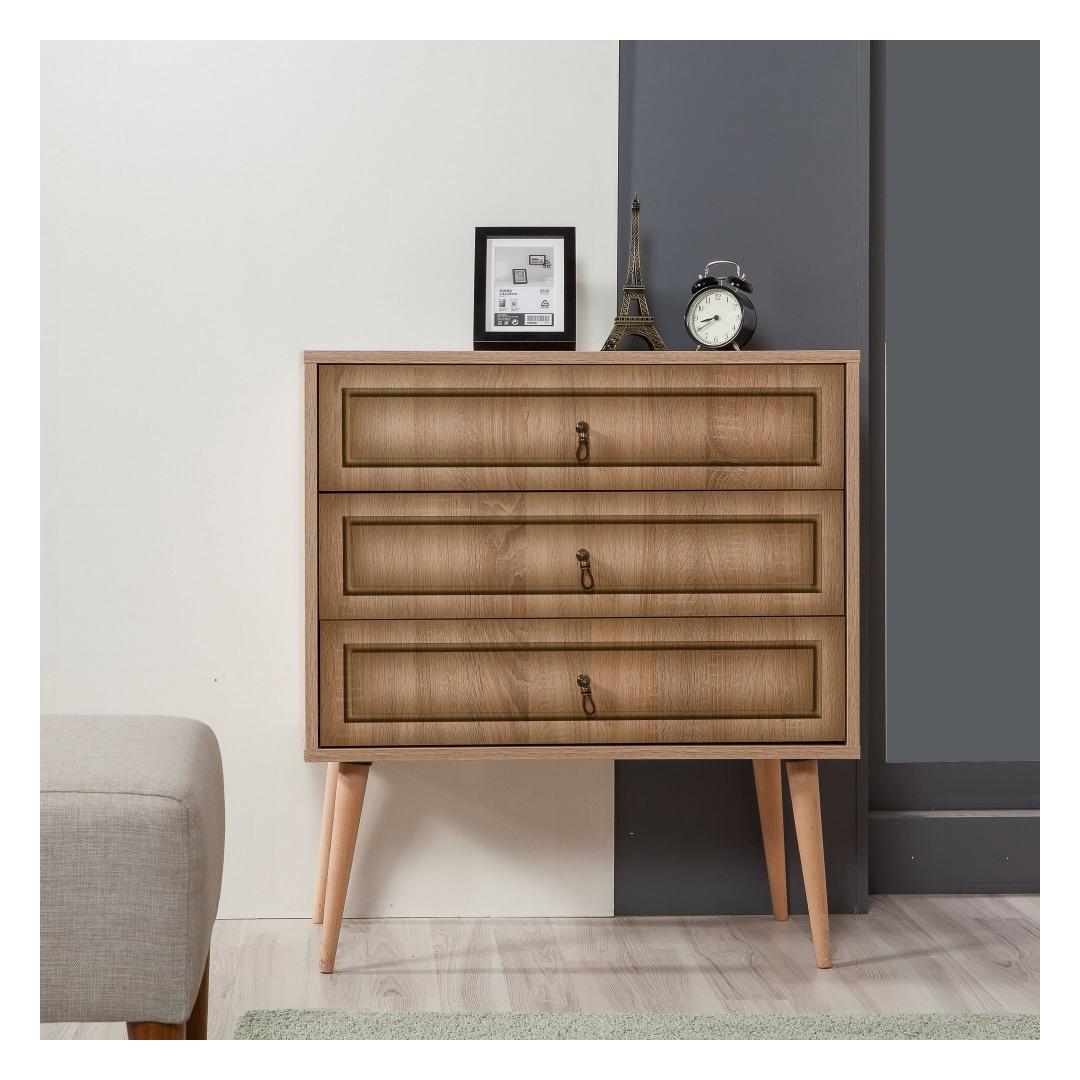 Kolme mahuka sahtli ja arvukate riiulitega kapp pakub palju hoiuvõimalusi, et hoida oma asjad korras ja organiseeritud. Sahtli kõrgus on 18. 5 cm võimaldab teil hoida suuremaid esemeid, samas kui 30 cm kõrgune jalg lisab elegantsust. Lisaks saab seda kappi hõlpsasti seinale kinnitada, et lisada stabiilsust ja turvalisust.