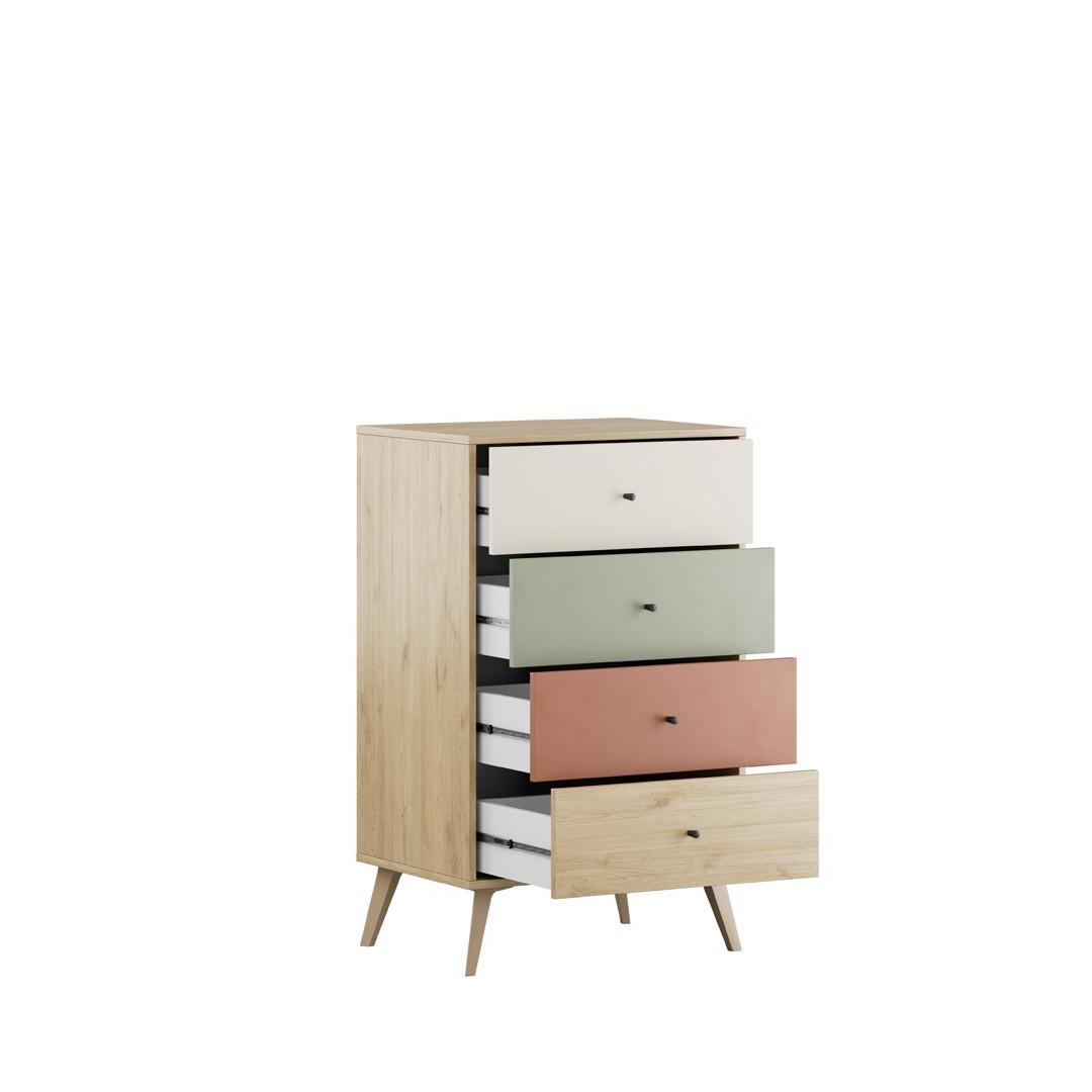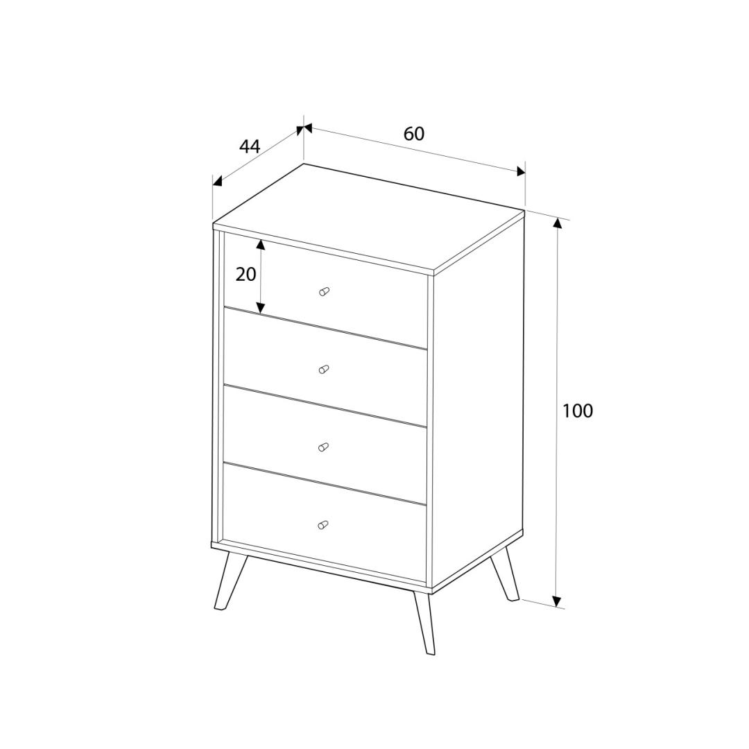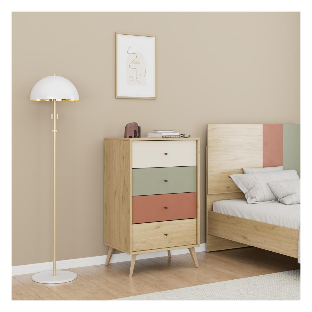 Ütle hüvasti segadusele ja tere kaunilt korrastatud ruumile, sest meie kapp on varustatud nelja mahuka sahtliga. Alates riietest ja aksessuaaridest kuni voodipesu ja muuni, pakub see kapp piisavalt ruumi kõigile teie hädavajalikele asjadele. Hoidke oma asjad kenasti paigas ja hõlpsasti kättesaadavad, kui neid vajate.