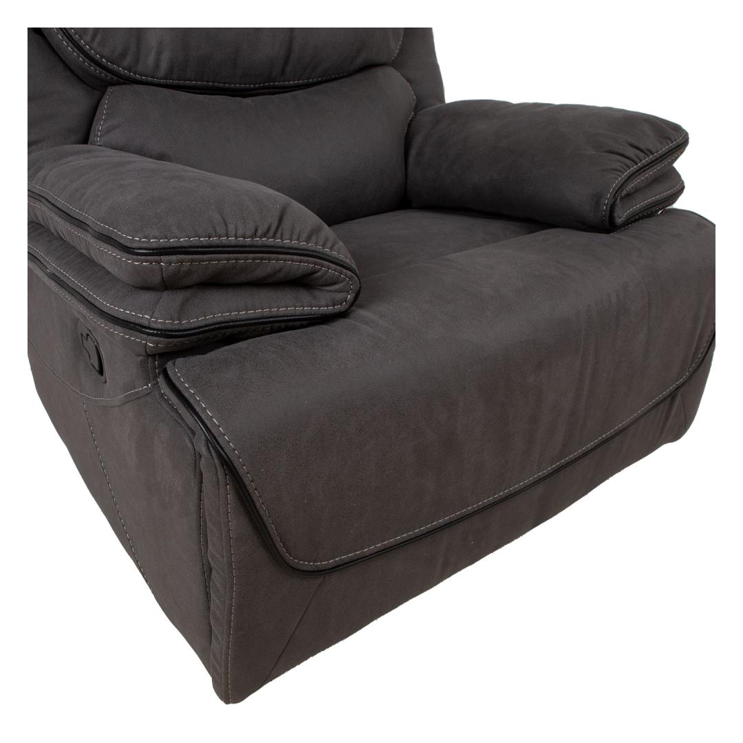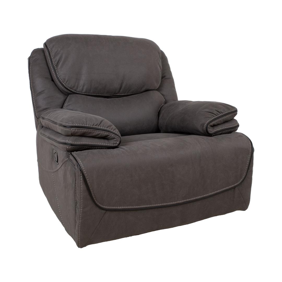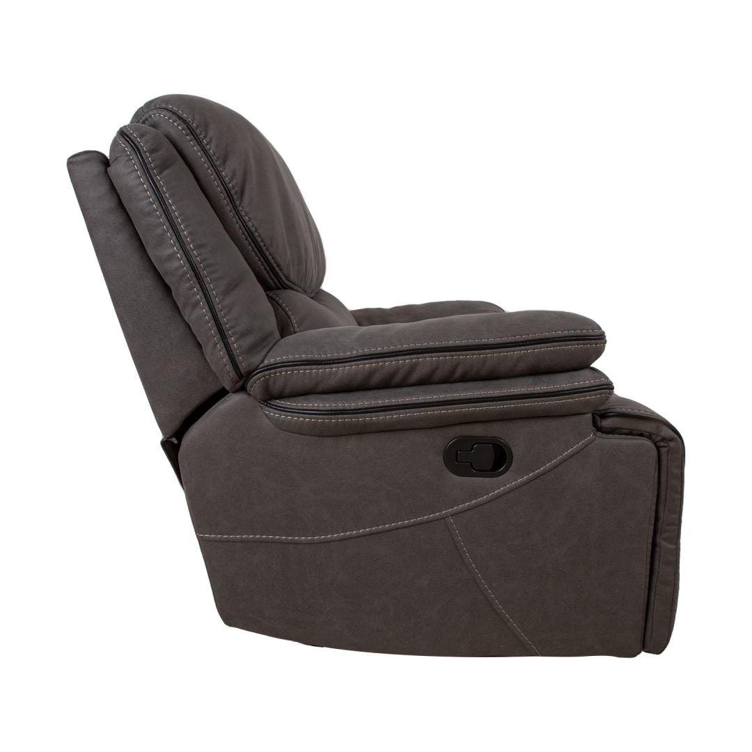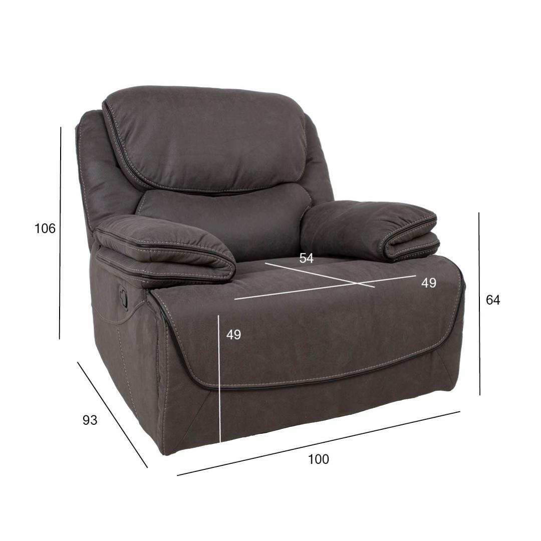 Tugitool GORDY manuaalne recliner 100x93xH106cm, hall. Recliner tüüpi tugitooli jalatoe asendit on võimalik muuta manuaalse mehhanismi abil. Jalatuge üles tõstes liigub seljatugi sujuvalt kaasa. Jalatoe tõstmiseks tõmmake tooli paremal välisküljel asuv kang üles. Surudes jalatuge alla fikseerub see automaatselt algasendisse. Kattematerjal: kunstnahka meenutav pehme polüesterkangas. Karkass ja vedrustus: vineer, puit, metall. Pocket vedrud. Polsterdus: polüuretaanvaht 20-28kg/m³. Tugitooli üldmõõdud on 100x93xH106cm. Istme laius 49cm, istme sügavus 54cm, istme kõrgus 49cm. Seljatoe kõrgus 69cm. Käetoe kõrgus maast 64cm. Tugitooli tagakülg on viimistletud ja see on ruumi keskele paigutatav.