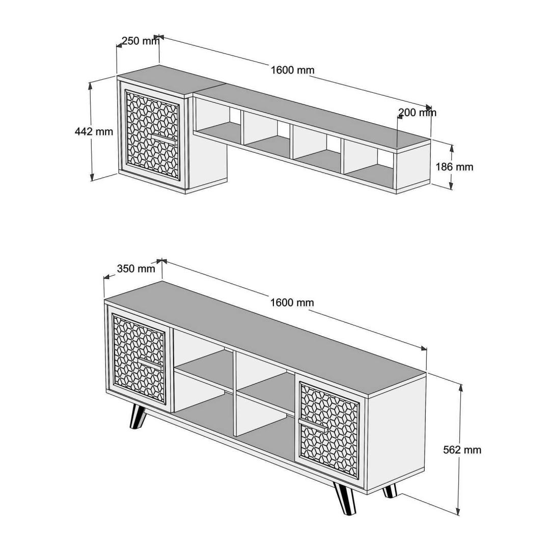 TV Unit Size: Width: 160 cm Height: 56,2 cm Depth: 35 cm